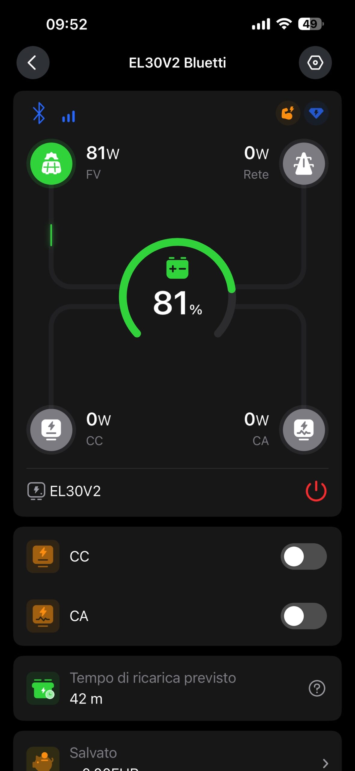 Bluetti ha messo in commercio due prodotti d’uso specifico (Handsfree 1 e 2) che abbiamo provato qualche mese fa e che ha caratteristiche di potenza simili ma La BLUETTI Elite 30 V2 – disponbile ufficialmente dal 13 Agosto 2025 si inserisce nella gamma più aggiornata che vede due sorelle iper potenti come le Elite 100 e 200 e si posiziona intelligentemente nella parte bassa ma solo per la potenza: 288 Wh, inverter puro da 600 W, “Power Lifting” a 1.500 W per i carichi resistivi, ricarica Turbo, batteria LiFePO4 da 3.000 cicli, connettività Wi‑Fi/Bluetooth e un UPS che commuta in meno di 10 ms. A guidarla oltre il classico collegamento Bluetooth anche il Wi-Fi ed una App con una marea di opzioni che la rende ancora più versatile