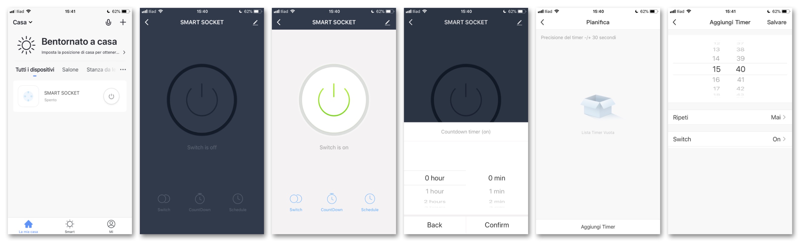 In questa sezione ci sono altri due pannelli, Countdown e Schedule, che consentono rispettivamente di accendere o spegnere la singola presa al termine di un conto alla rovescia o ad un orario prestabilito. Nel caso della programmazione è perfino possibile ripetere l’operazione in più giorni della settimana con un solo comando.