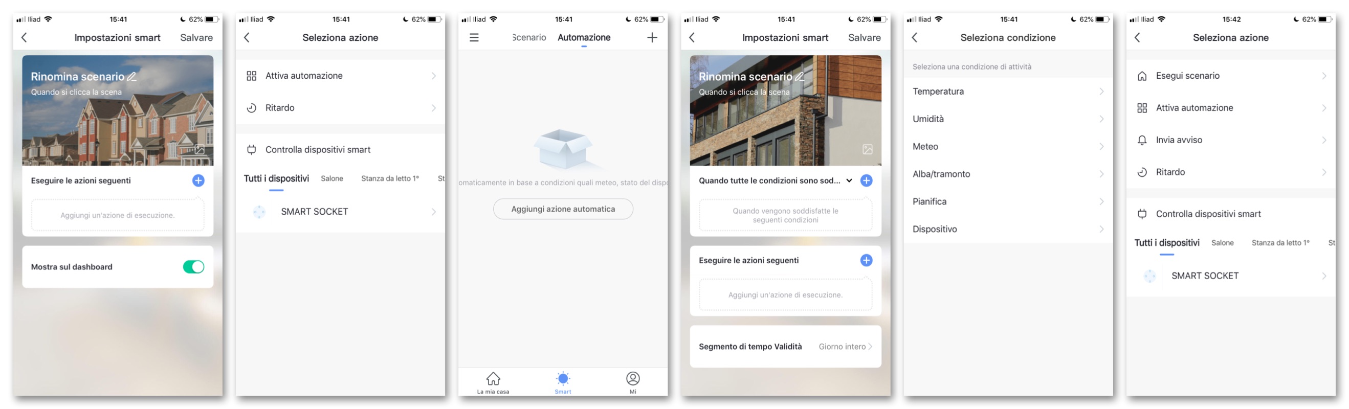 Molto interessante le sezioni Scenari ed Azioni accessibili dalla scheda Smart visibile nella pagina iniziale dell’app. Grazie a queste due funzioni è infatti possibile portare la programmazione dell’accensione e dello spegnimento per le singole prese ad un livello superiore.