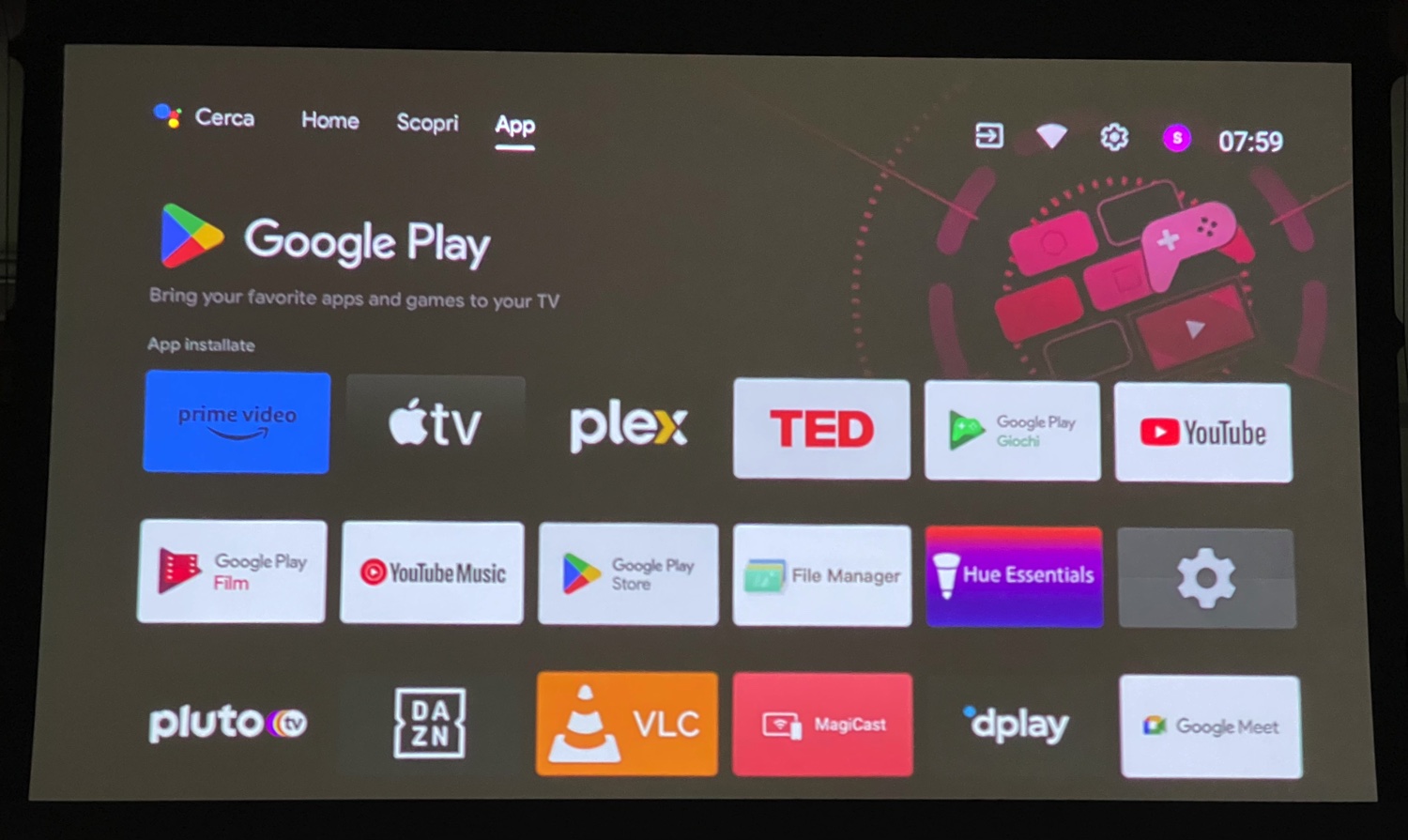 E’ anche possibile installare fin da subito una serie di App consigliate per la visione della TV o altre. Una volta avuto l’accesso ad Android TV potremo entrare nel PlayStore per aggiungere tutto quel che ci interessa. Purtroppo XGIMI non può scaricare direttamente Netflix dal PlayStore ma nella confezione trovare una cartolina aggiuntiva che vi spiega nel dettaglio come rimediare e alla fine avremo Prime Video, Apple TV, Netflix, Paramount+, Plex, DAZN e tanti altri servizi a portata di telecomando (e di voce).