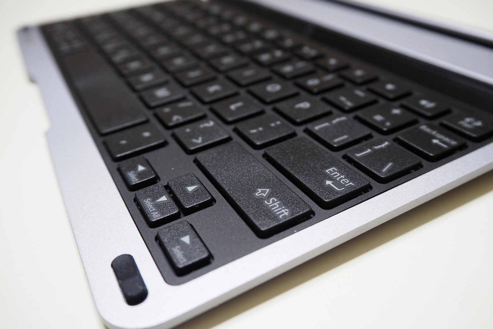 Tutto questo imporrà un po’ di pratica, ma dopo qualche ora di scrittura, si ricavano facilmente le lettere, senza contare che anche scrivendo di getto sarà spesso il sistema operativo a fare la correzione con l’accentata per noi. Problema accenti e apostrofo a parte, la digitazione è eccellente: i tasti in syile chiklet a corsa ridotta, sono del tutto simili per forma a quelli dei portatili Apple; anche se la risposta dei tasti della QODE Thin Type è leggermente più gommosa di quelli di una tastiera Apple, la sensazione è di quella di una elevata precisione. L’unico vero problema sono le dimensioni: i tasti sono un po’ piccoli e possono disorientare se si è abituati ad un computer portatile con tastiera completa.