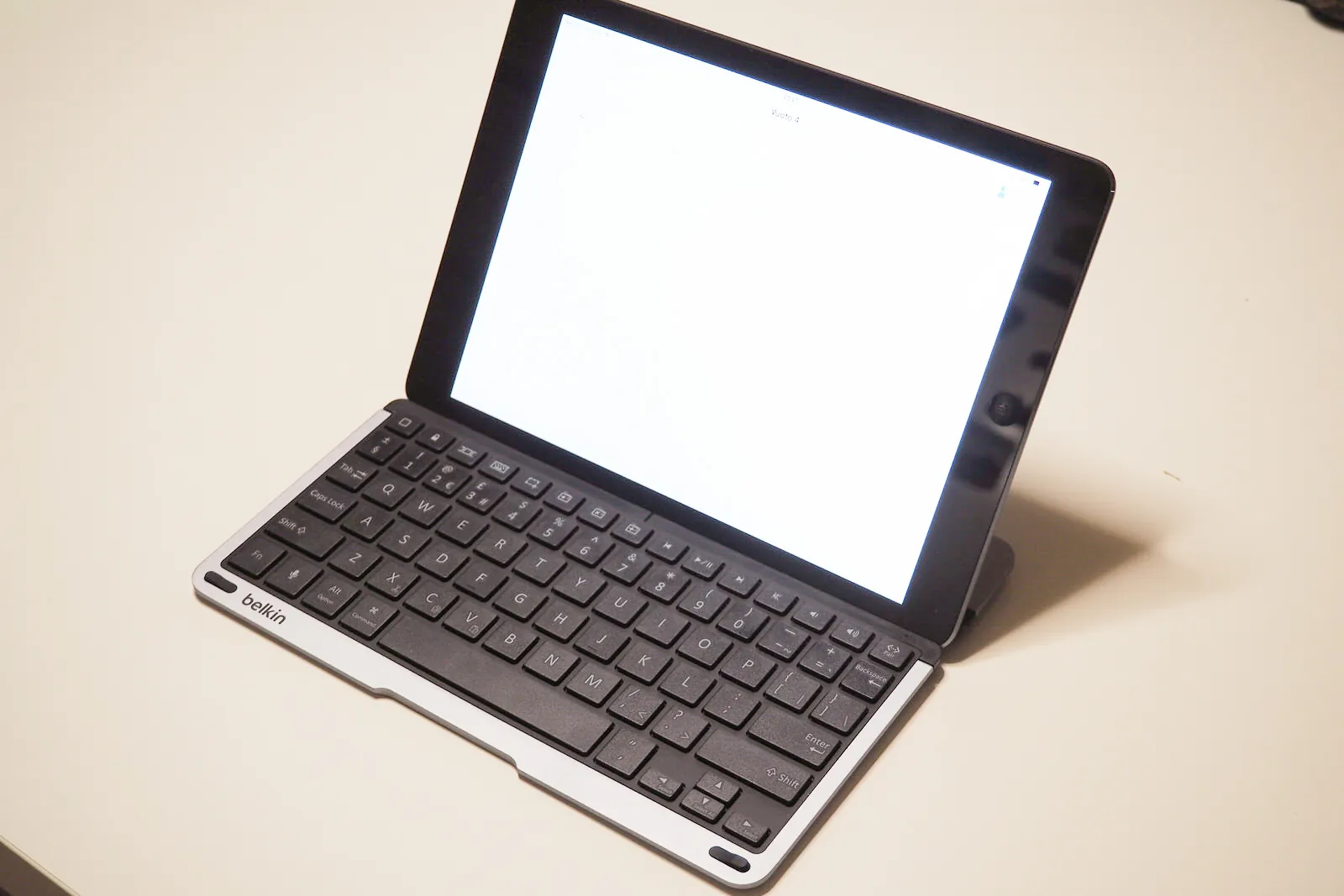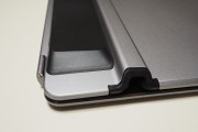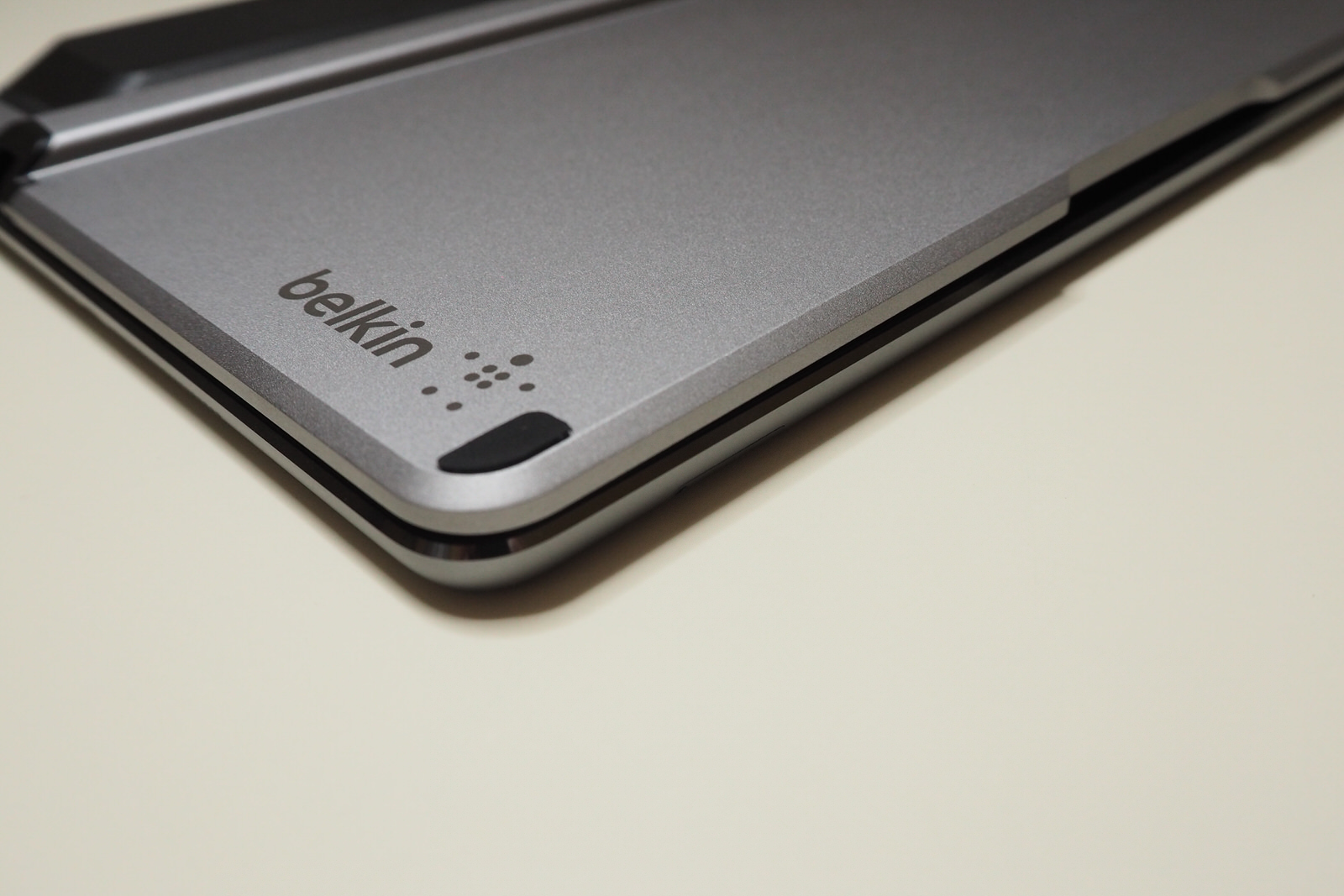 La QODE Thin Type colpisce fin dal primo momento in cui viene estratta dalla confezione, prima ancora di percepire come funzionerà e a cosa serve. Si tratta di una sottile lastra di alluminio anodizzato, rifinito alla perfezione, che fornisce una sensazione eccellente. I tasti neri in contrasto con l’alluminio leggermente brunito danno un senso di eleganza e di cura del dettaglio. Non troviamo nessun interruttore sulla tastiera. Belkin ha infatti introdotto nella QODE Thin Type un sistema che si attiva con il peso, quando l’iPad si incastra nella fessura di supporto. La tastiera dal punto di vista del fattore di forma non è nulla di nuovo; come altri prodotti precedenti della stessa Belkin e della concorrenza, è in un tempo una tastiera e una cover che copre lo schermo di iPad Air a seconda delle esigenze che avremo, lasciando però scoperto il dorso, con poche speranze di trovare una cover in grado di tutelarlo senza staccare la .QODE Thin Type stessa Nel momento in cui andremo ad usarla per scrivere, poggeremo l’iPad su di essa e il tablet assumerà una posizione inclinata, ergonomicamente precisa per la scrittura. Un aspetto del tutto inusuale per questo tipo di cover tastiera è che potremo anche usare l’iPad in verticale. Quando decideremo di usarla come cover, useremo la cerniera a magnete, così come si usa una normale Smart Cover. Al pari della smart cover di Apple, la QODE Thin Type spegne e accende l’iPad grazie ai magneti integrati.