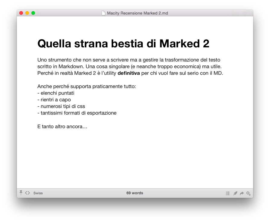 Con il flusso di lavoro che abbiamo creato, invece, dopo aver risolto refusi e altri eventuali problemi del testo su Mac, entra finalmente in gioco Marked 2.