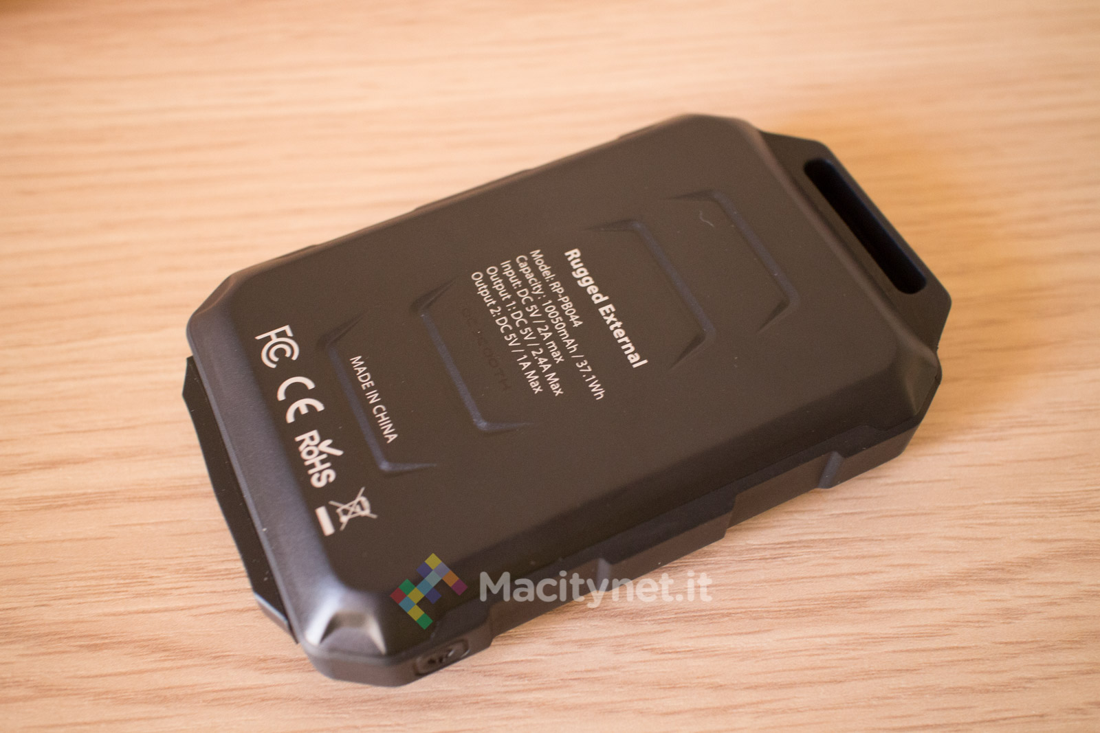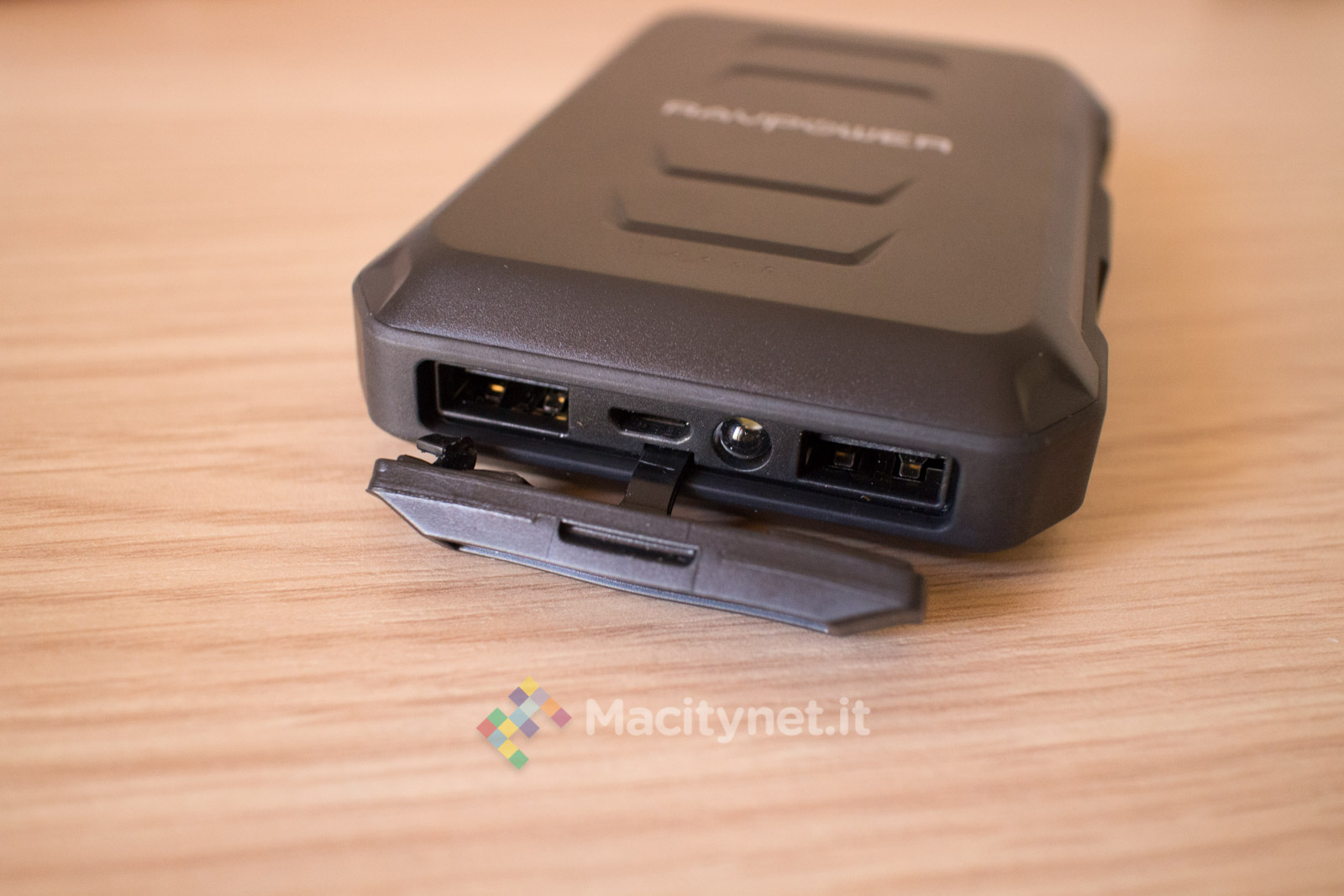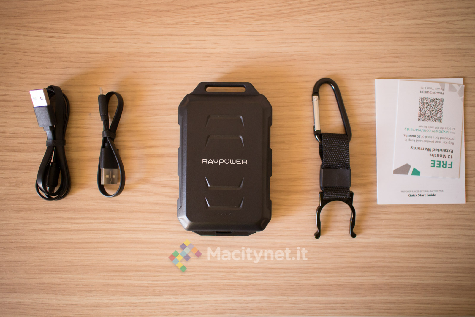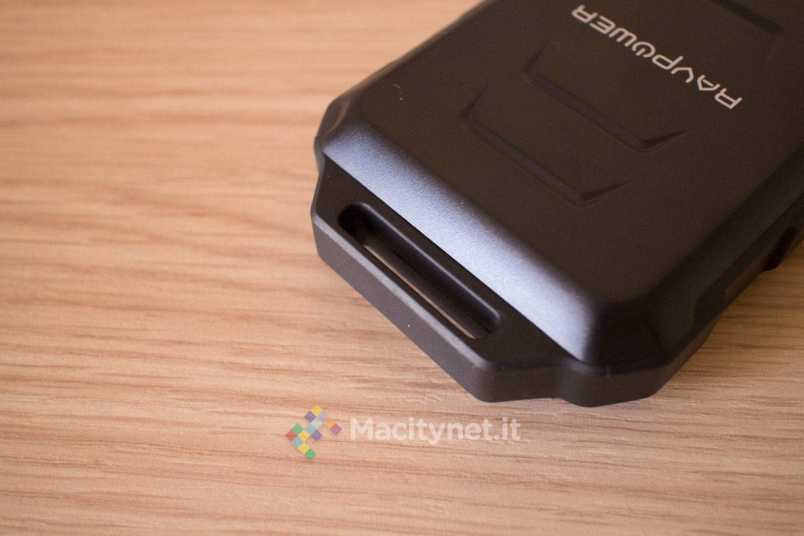 Chi può desiderare una batteria simile? Chi fa trekking, scampagnate, chi lavora in un cantiere può certamente trovare comoda la RavPower RP-PB044 per via del fatto che si può semplicemente agganciare alla cintura dei pantaloni con un moschettone e non si correrà il rischio di romperla se dovesse malauguratamente urtare contro qualcosa. Il coperchio che protegge ingresso e uscite non teme neanche pioggia incessante, schizzi d’acqua, polvere, fango, sabbia e neve, quindi è davvero l’ideale in tutte quelle situazioni dove si vuole lasciare la batteria sempre a portata di mano e pronta all’uso.