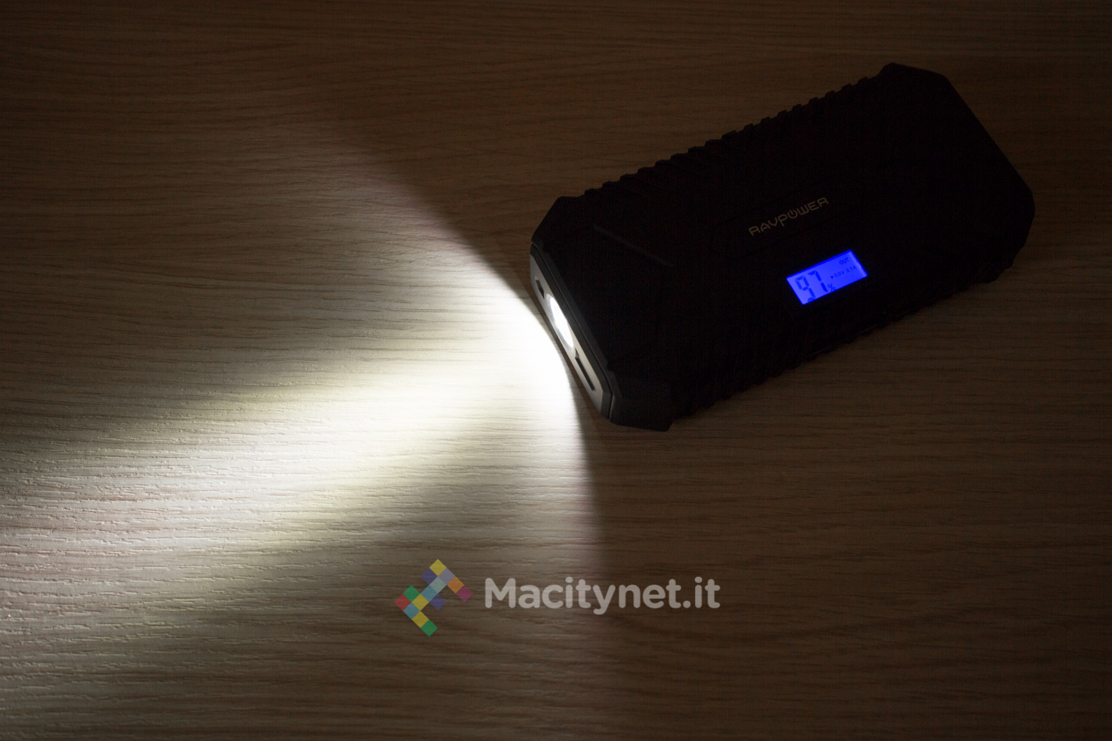 Un piccolo capitolo a parte va dedicato alla torcia LED che, rispetto a quella incorporata in batterie d’emergenza simili, offre un’illuminazione molto più potente. La luce è senz’altro sufficiente per offrire una buona illuminazione durante un cambio gomma notturno oppure, grazie alla modalità SOS e strobo selezionabili attraverso il pulsante laterale, può anche fungere da segnalatore di emergenza a bordo strada.