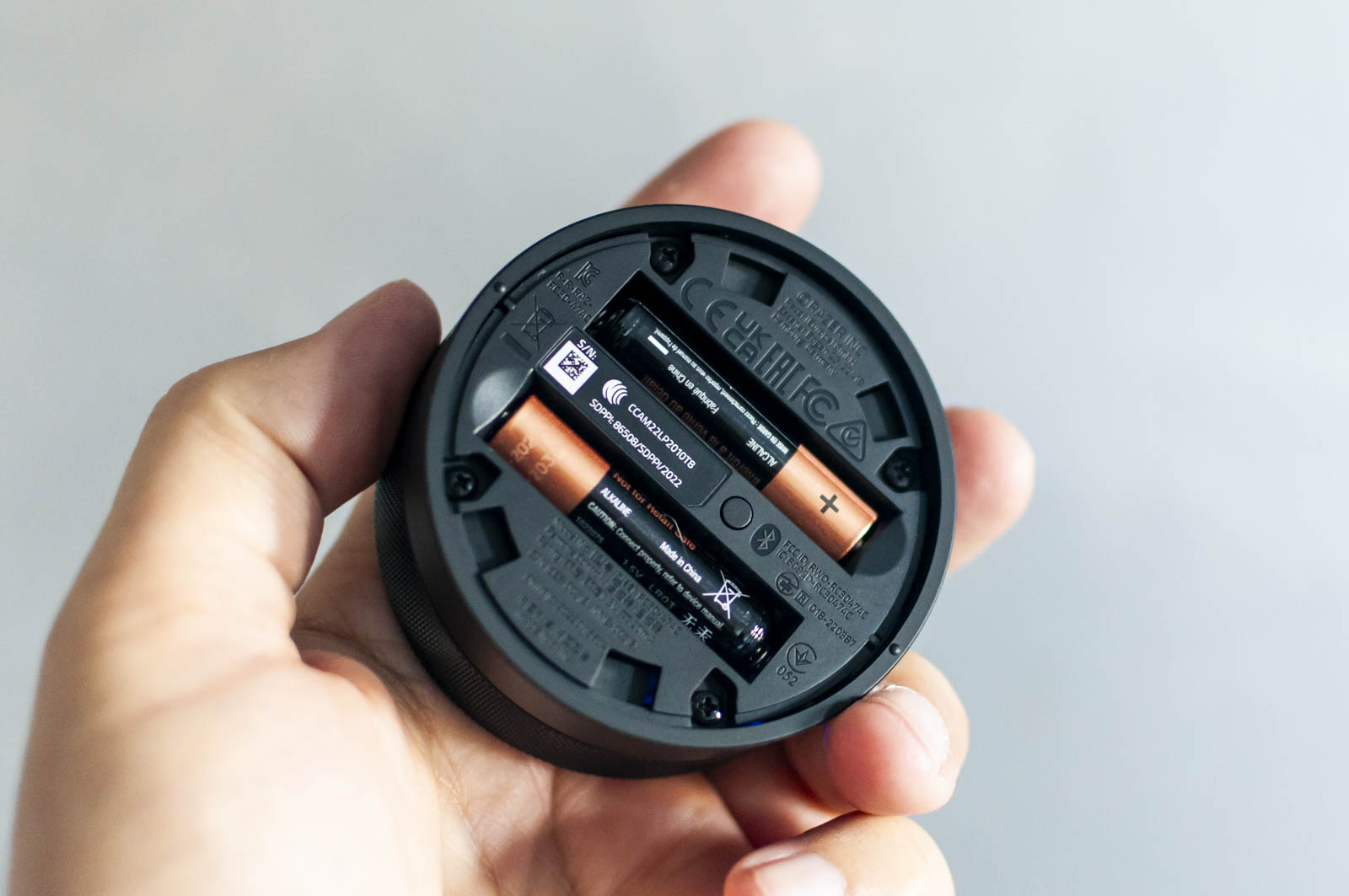 Questo permette di accendere, spegnere e attivare il Mute con la pressione della parte superiore, così come regolare il volume ruotando la ghiera (il tutto con una mano sola), così anche selezionare la fonte audio (USB o Bluetooth) tramite il piccolo pulsante alla base, che però poteva essere più grande e visibile.