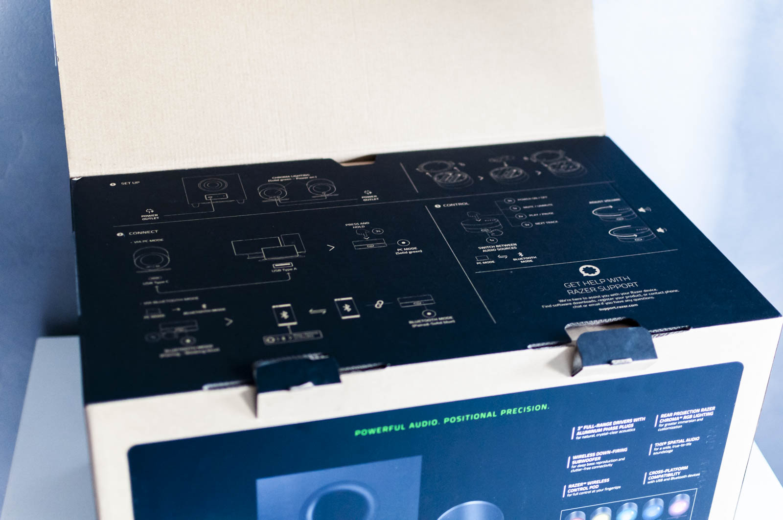 Razer Nommo V2 Pro non ha bisogno di una vera e propria installazione, nel senso che molte delle pratiche sono automatizzate per migliorare l’esperienza utente nella fase di più delicata.