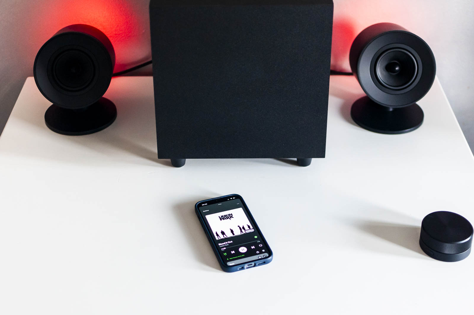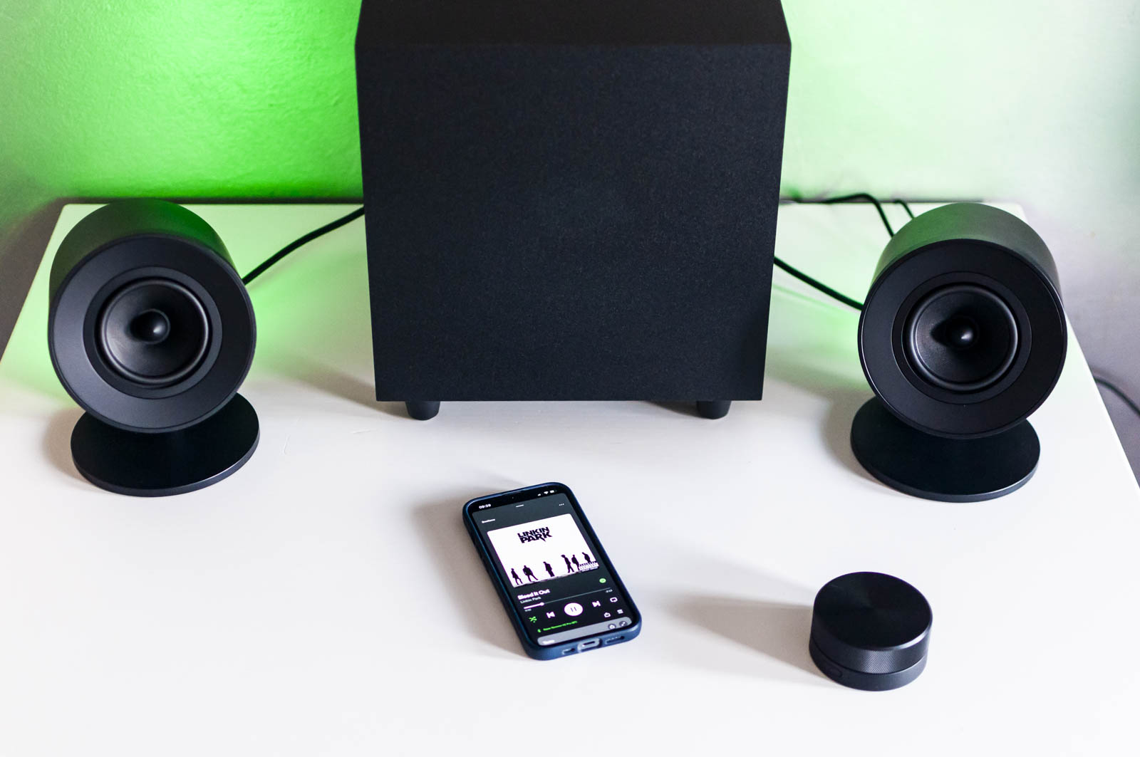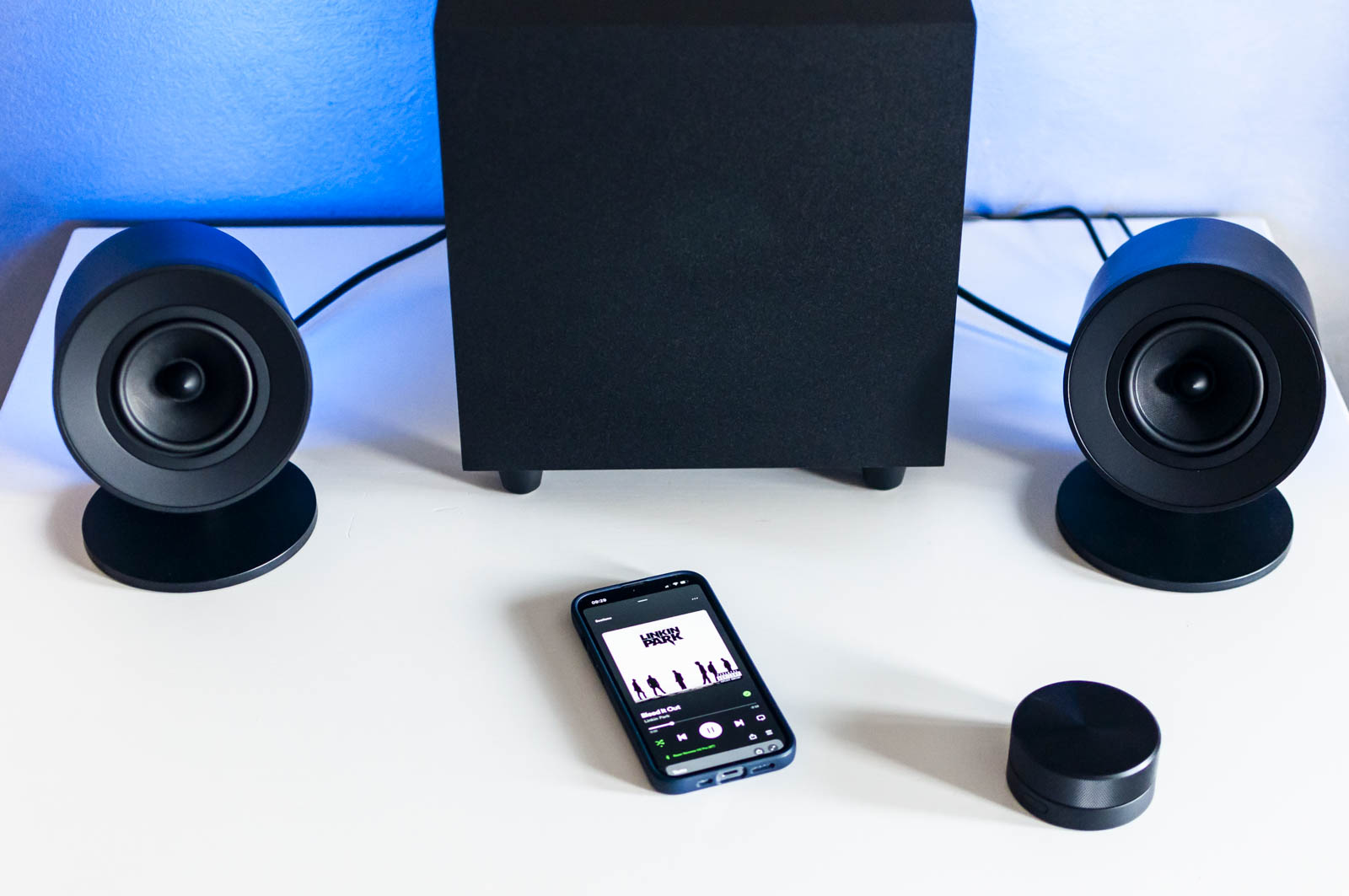 Dei due satelliti, connessi via cavo, uno fa da Master (con i controlli) e uno semplicemente da Slave (quindi solo da satellite comandato dal primo), anche se a parte i cavi sul retro, non c’è nessuna differenza visibile oppure operativa, dato che i due satelliti non presentano interruttori di nessun tipo (perlomeno nel modello Pro).