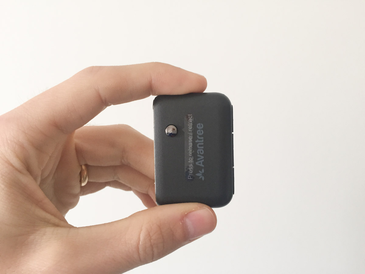 Incorpora infatti lo spinotto jack che viene estratto con la semplice pressione di un pulsante con un sistema che replica quello che troviamo nelle chiavi di avviamento per le auto. Basta schiacciare il pulsantino e la spina jack scatterà immediatamente all’esterno per consentirne il collegamento.