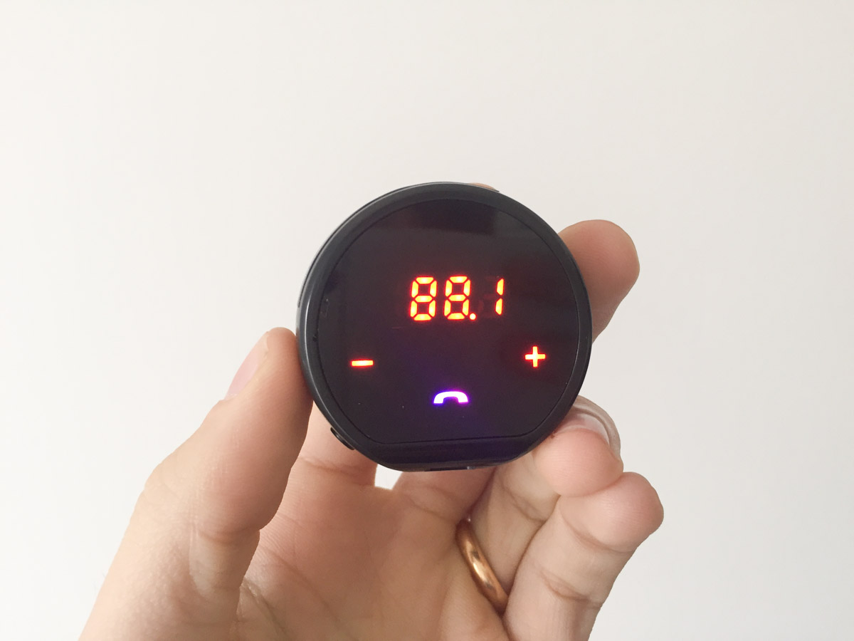 Completamente diverso dai precedenti, ha una forma circolare e un display touchscreen sul quale sono visualizzati la frequenza e i tasti di funzionamento. E’ progettato esclusivamente per l’uso in macchina ma qui il collegamento all’autoradio non avviene fisicamente attraverso un cavetto bensì agganciandosi in modalità wireless ad una stazione radio vuota. Basta cioè ricercare manualmente una frequenza libera sull’autoradio, quindi impostare la stessa nel ricevitore pigiando i tasti “+” e “-”: in un lampo l’impianto audio sarà dotato di tecnologia Bluetooth.