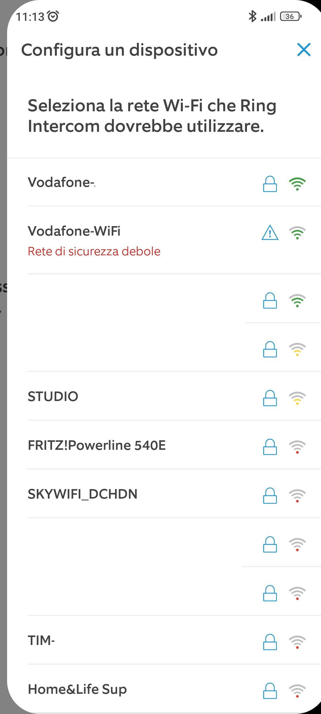 Una volta acceso, Ring Intercom entrerà in modalità di configurazione e creerà automaticamente a una propria rete temporanea Wi-Fi alla quale connettersi; successivamente, l’utente dovrà connettersi alla propria rete Wi-Fi di casa.