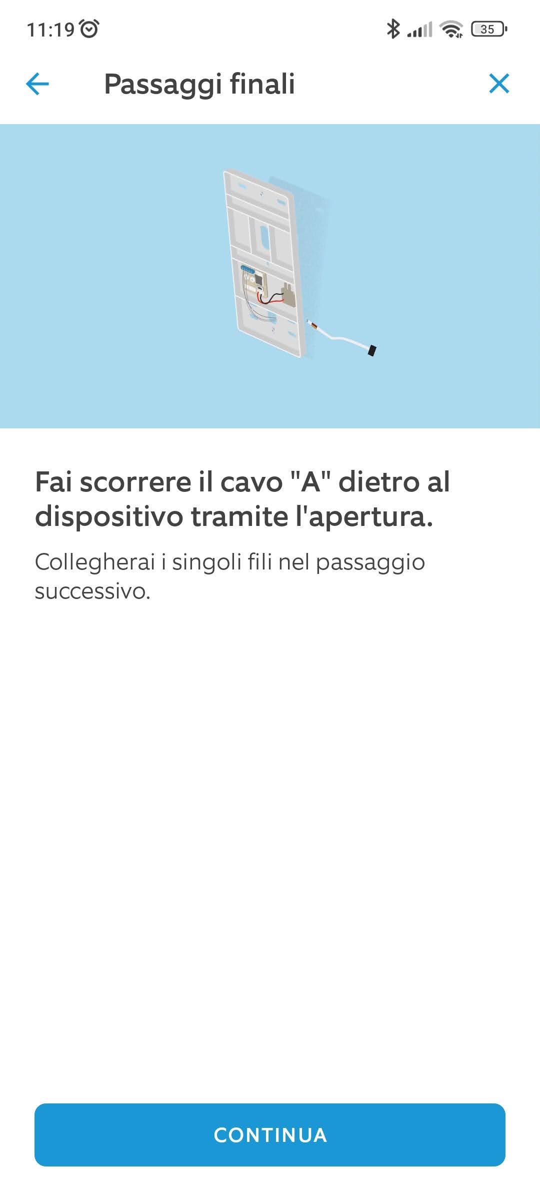 Una volta fatto passare il cavo attraverso la parte posteriore della piastra di base del citofono sarà necessario collegare i vari fili ai terminali corrispondenti nel citofono. Qui le cose potrebbero diventare più complicate, ma fortunatamente l’app vi guiderà anche in questo. Ed infatti, dopo aver selezionato la marca e il modello del vostro citofono, vi sarà indicato quale set di cavi utilizzare e in che posizione metterli esattamente.