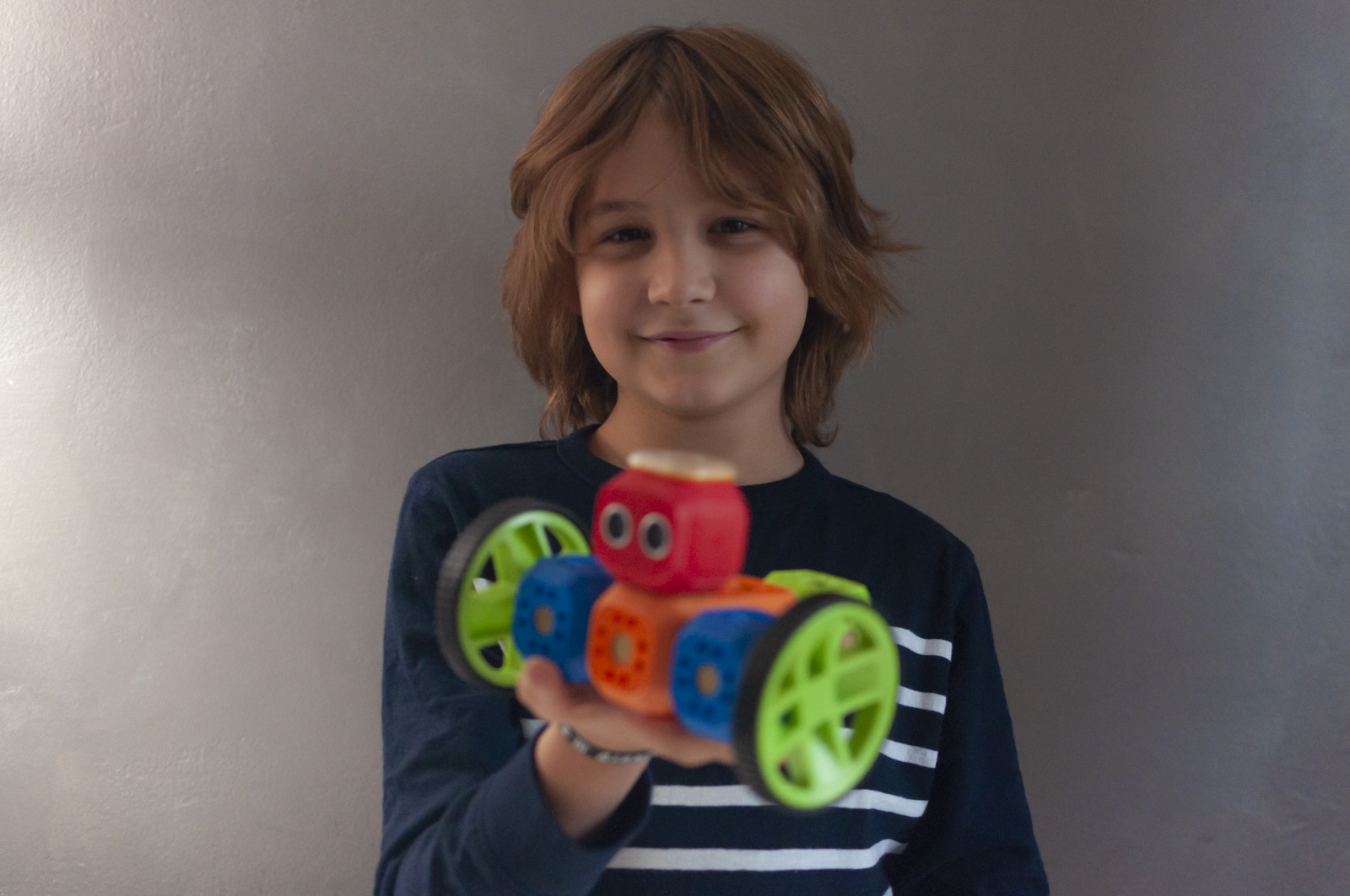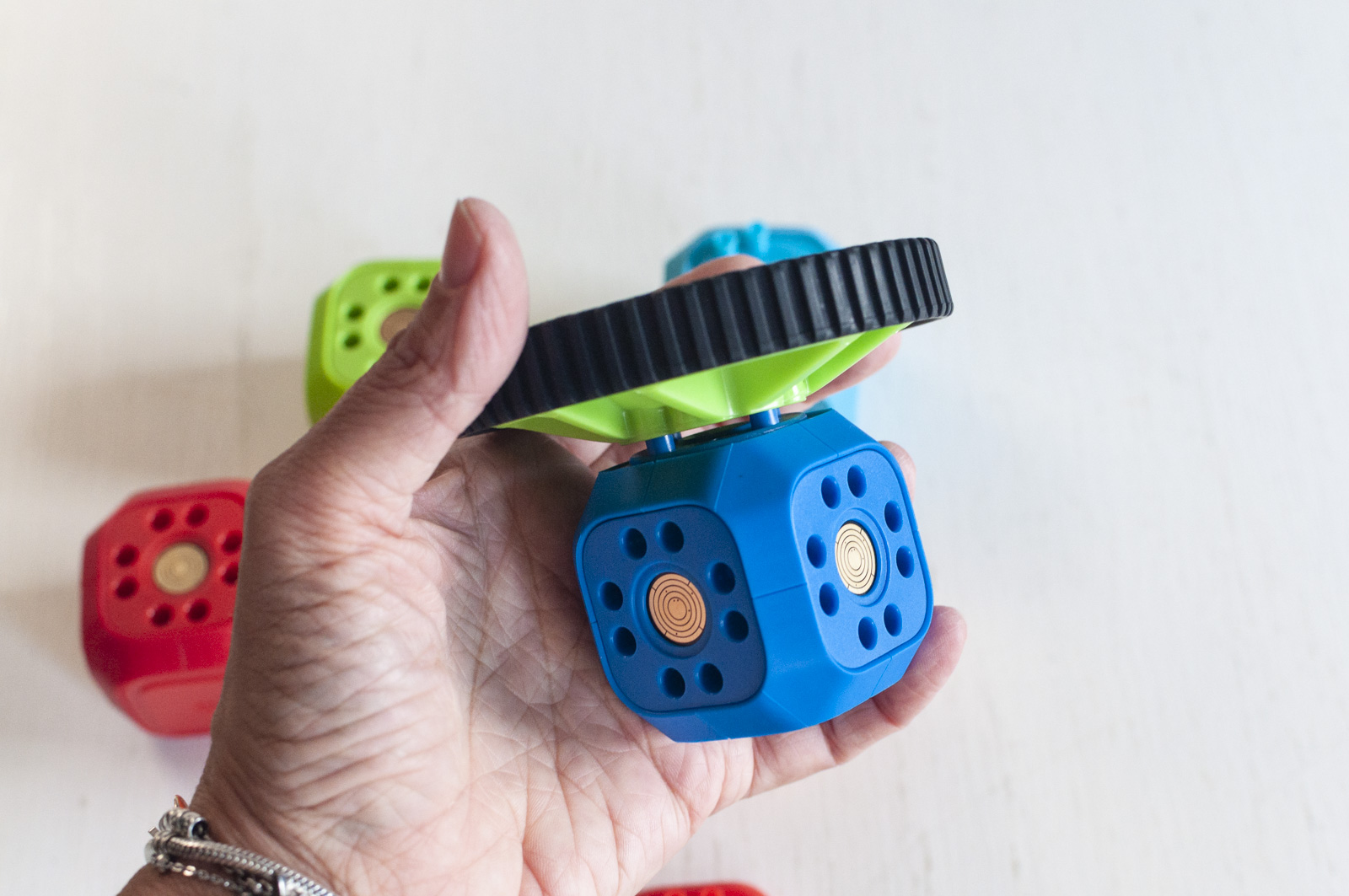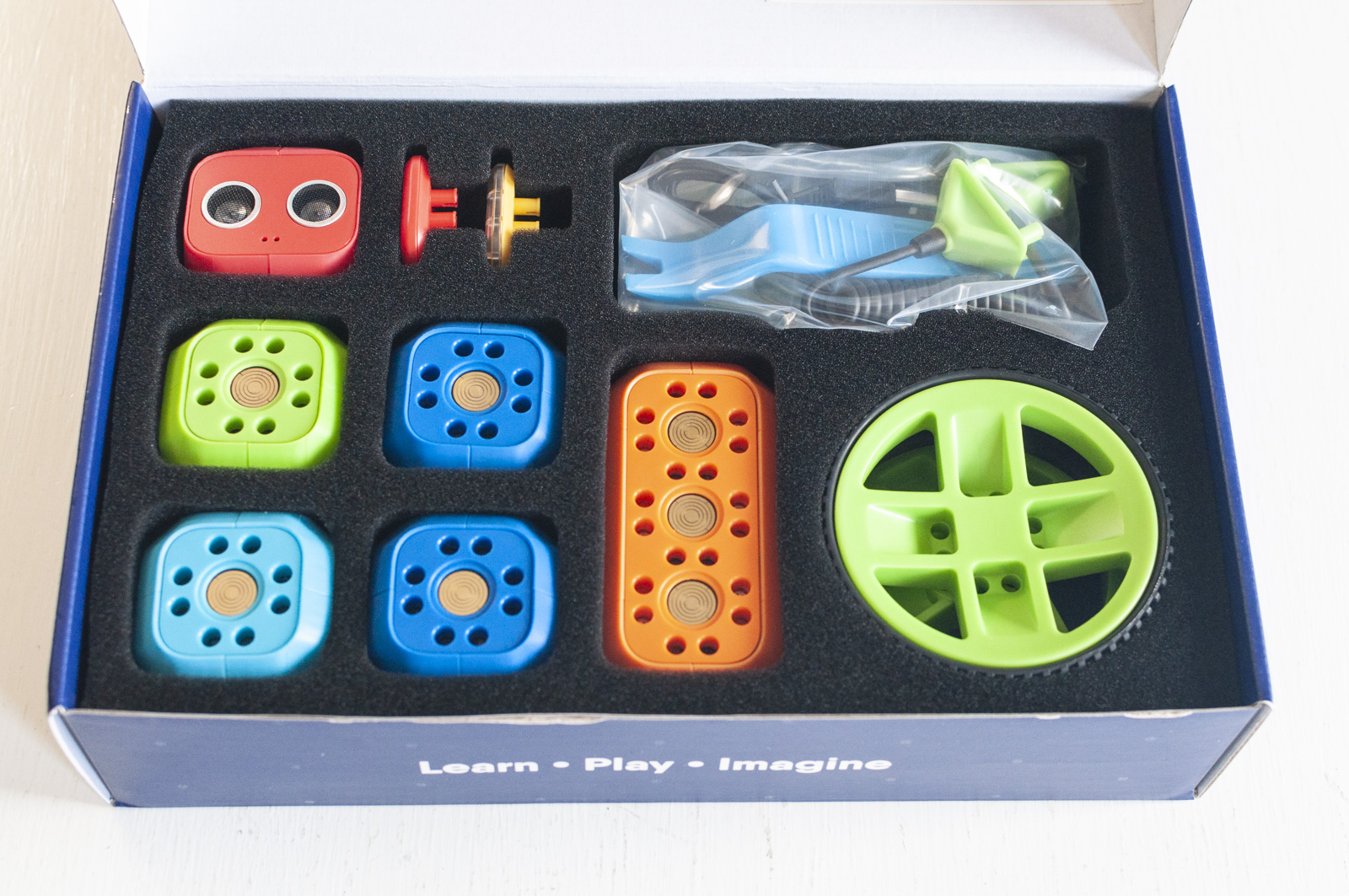 A scatola aperta ci troviamo di fronte ad un insieme di pezzi che, a prima vista, ricordano un po’ la serie Lego Duplo, ma che subito dopo mostrano una notevole diversità. I pezzi sono pensati per agganciarsi l’uno all’altro in diversi modi, ma all’interno contengono dei connettori che permettono loro di muoversi in autonomia, o di far luce o di suonare.