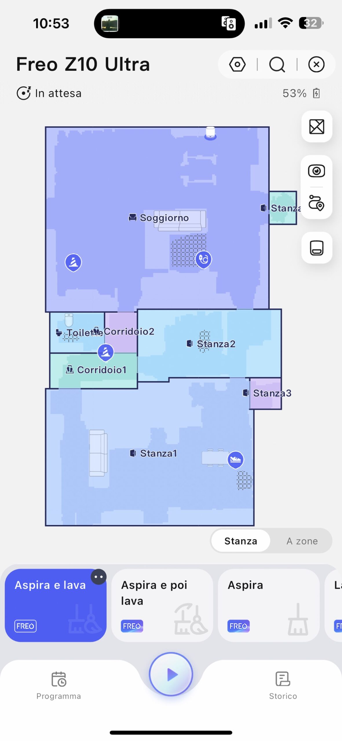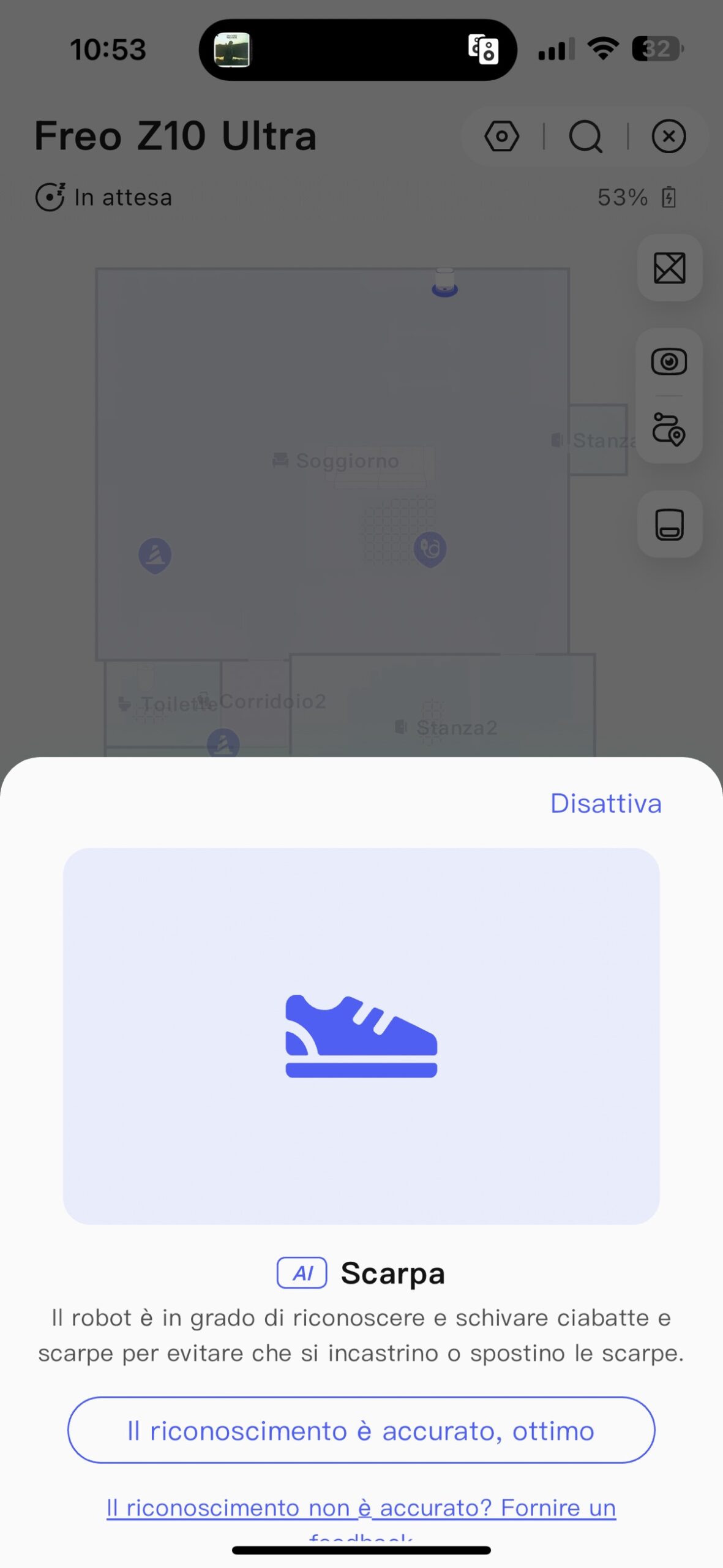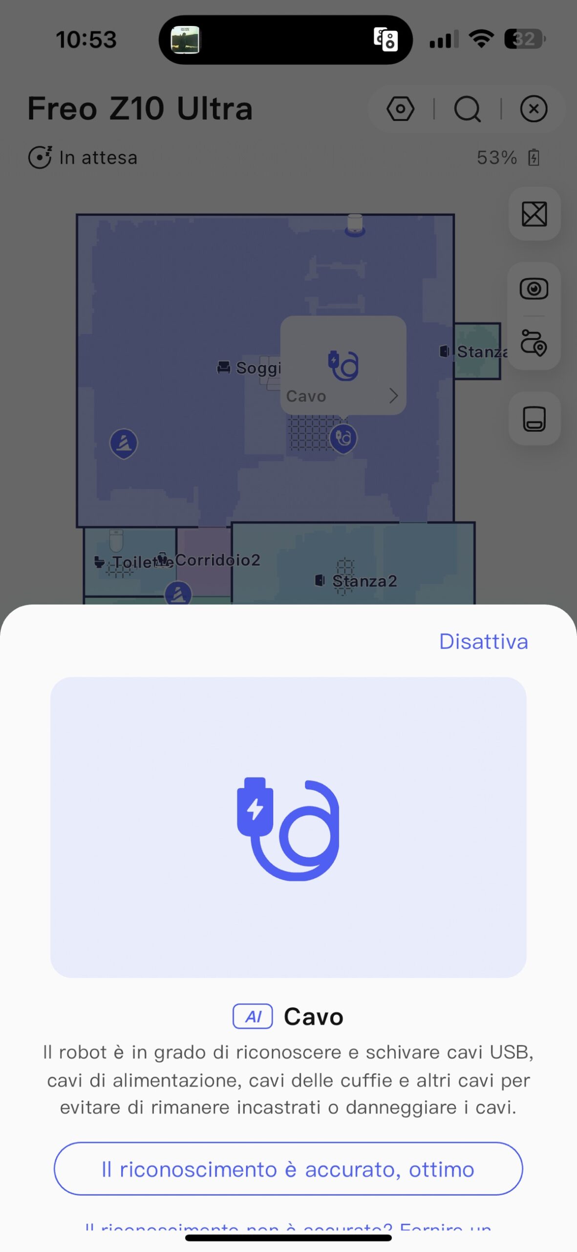 Il passo avanti rispetto al modello Z Ultra si nota soprattutto per la maggiore capacità di aspirazione e l’efficacia della pulizia degli angoli ma anche per la gestione dei tappeti. Il lavoro dell’AI è notevole sia per la capacità di riconoscimento degli oggetti che lasciate in giro in casa sia per l’adattabilità dei trattamenti di aspirazione e lavaggio alle diverse superfici.