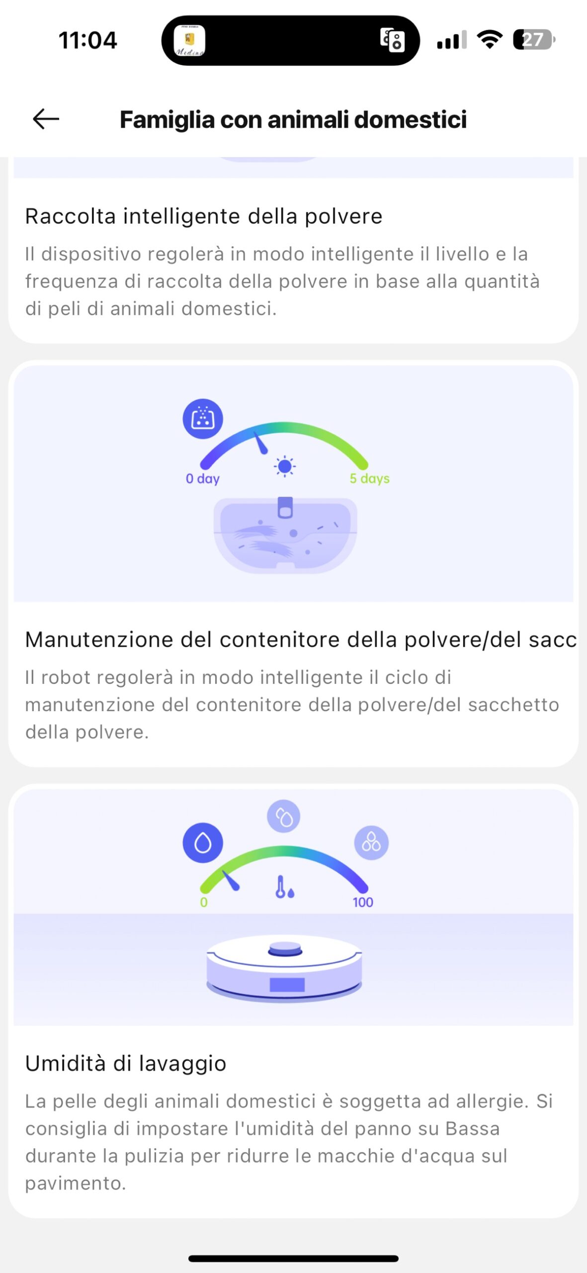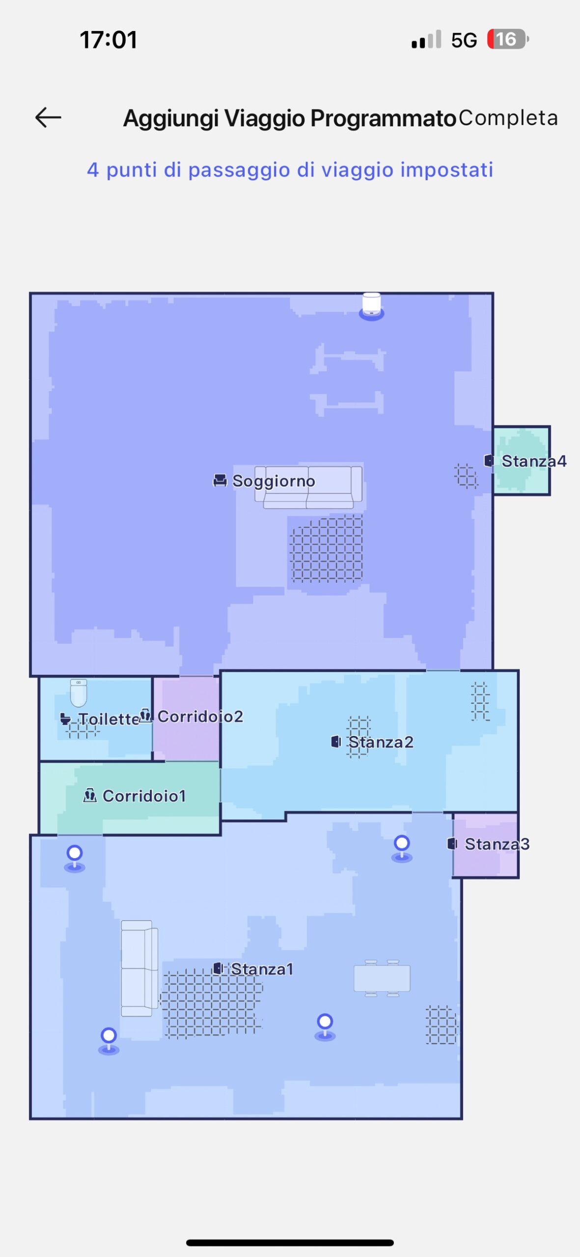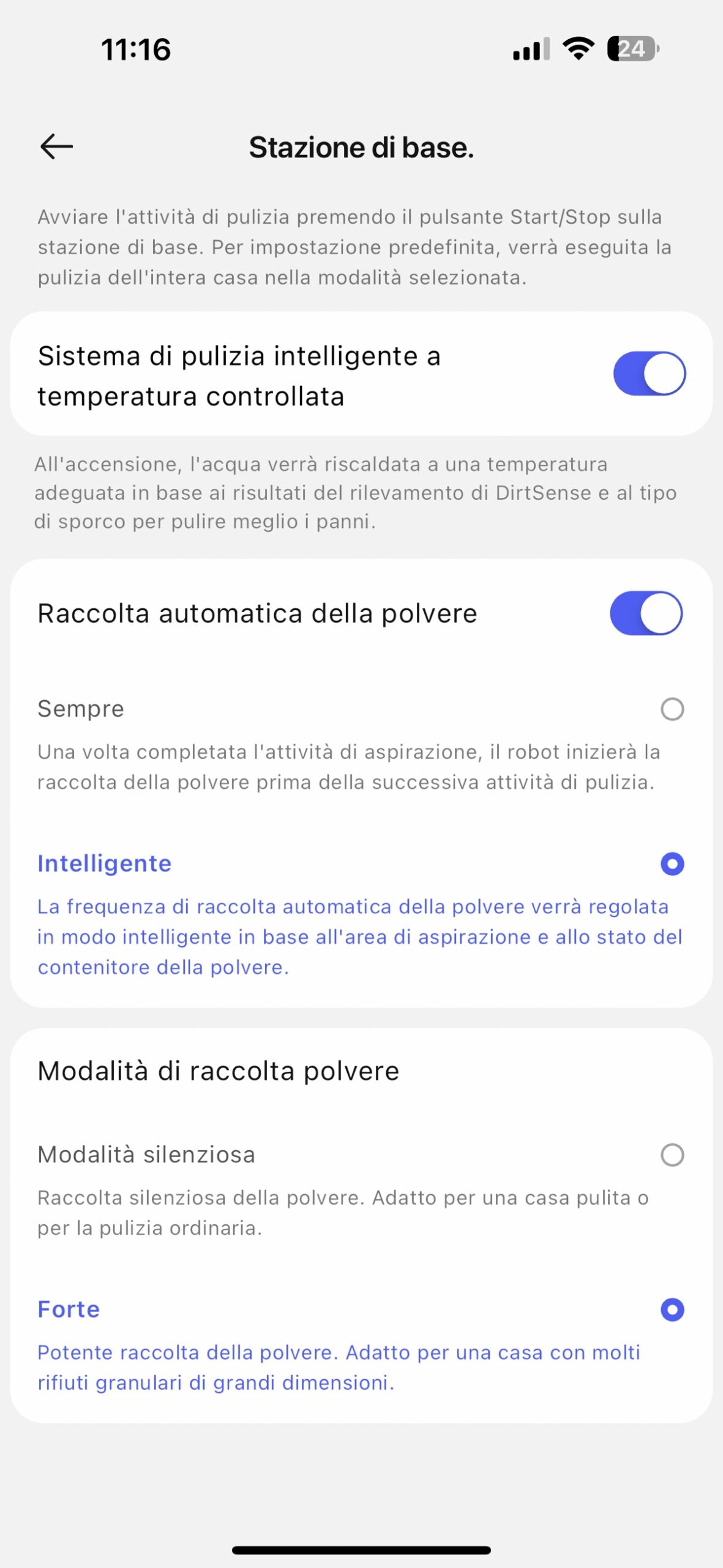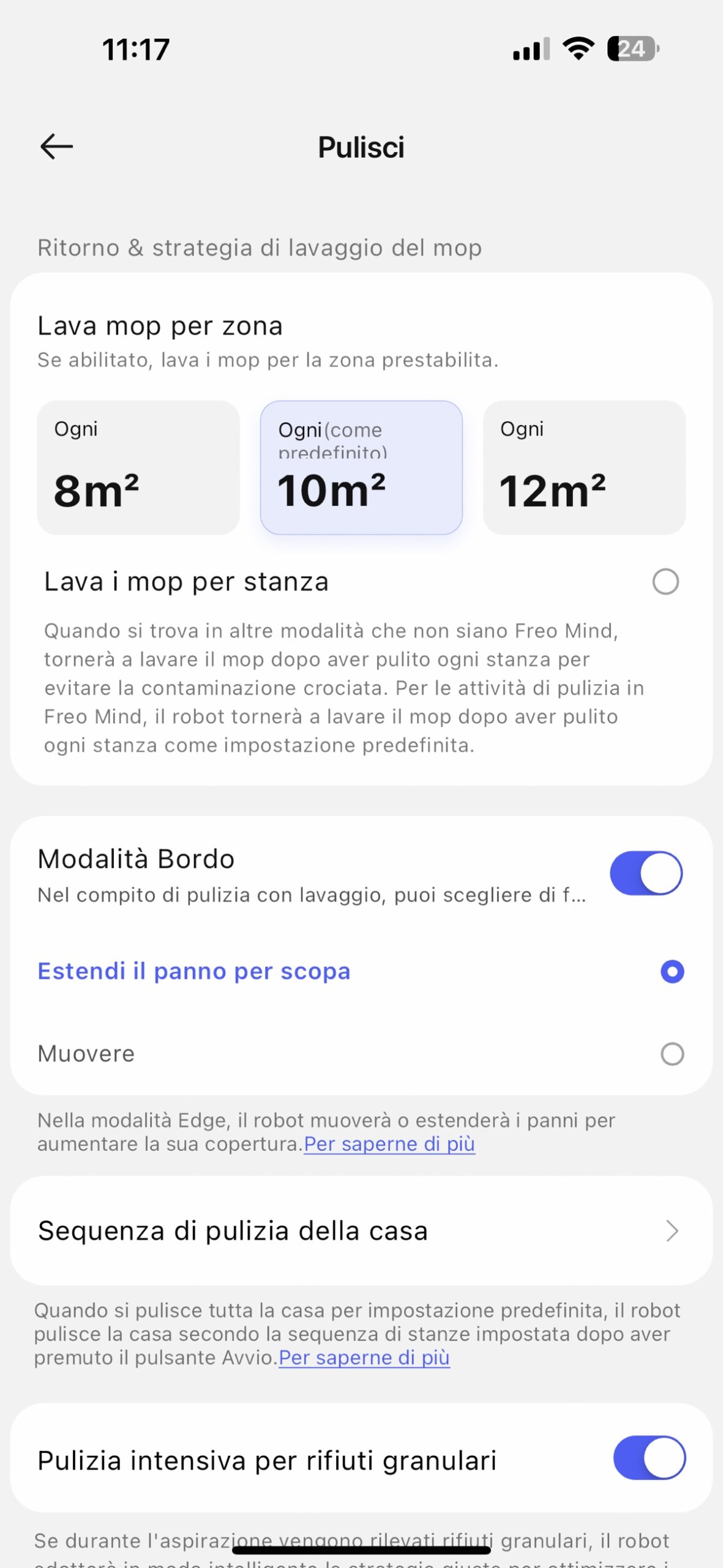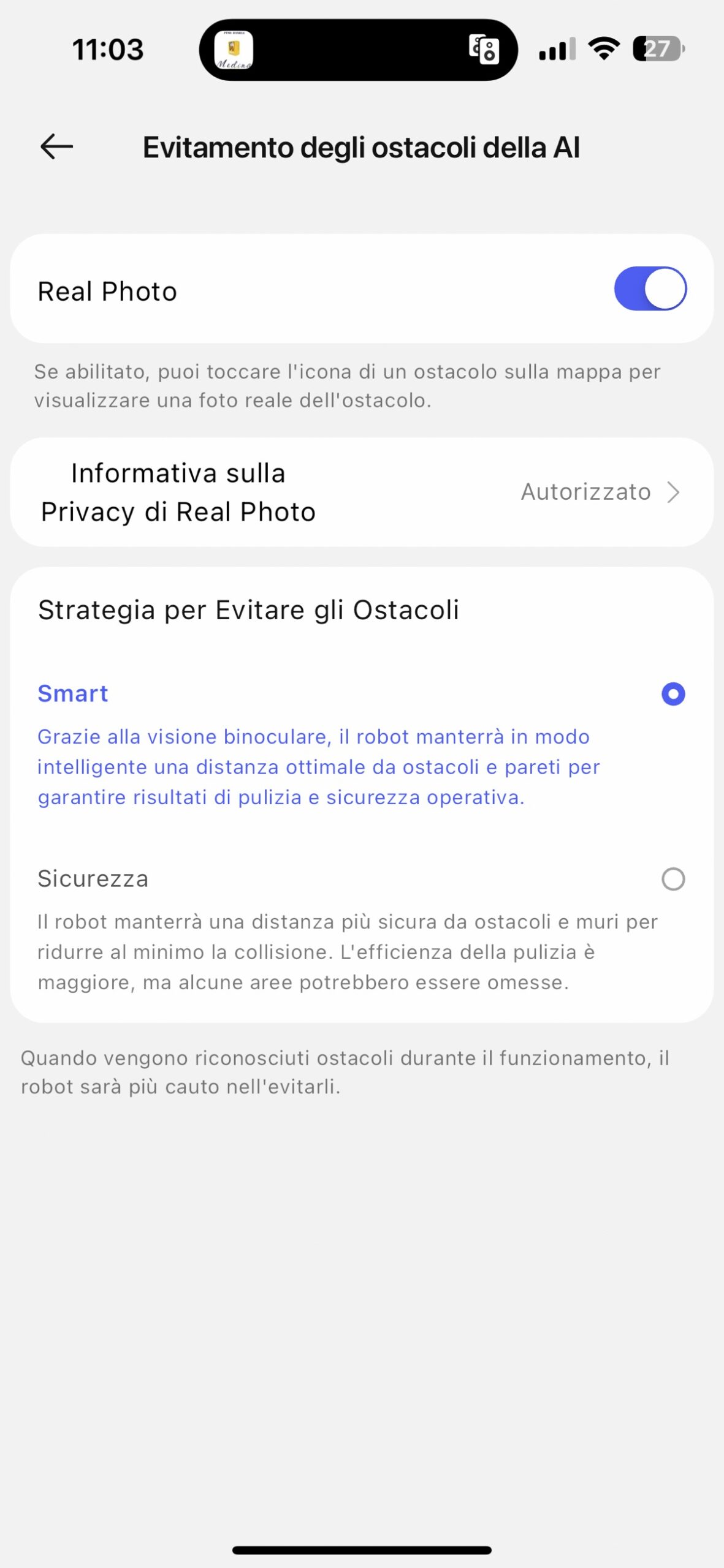 L’applicazione ha una marea di opzioni ed un utente neofita potrebbe rimanere un po’ frastornato dai lunghissimi menu ma allo stesso tempo le impostazioni di base che seguono alla tracciatura dell’ambiente di partenza possono accontentare anche chi non vuole accedere alle tante schermate: ceramica, parquet, diversi tipi di tappeti vengono tutti corretamente selezionati e gestiti dal robot anche in piena autonomia.