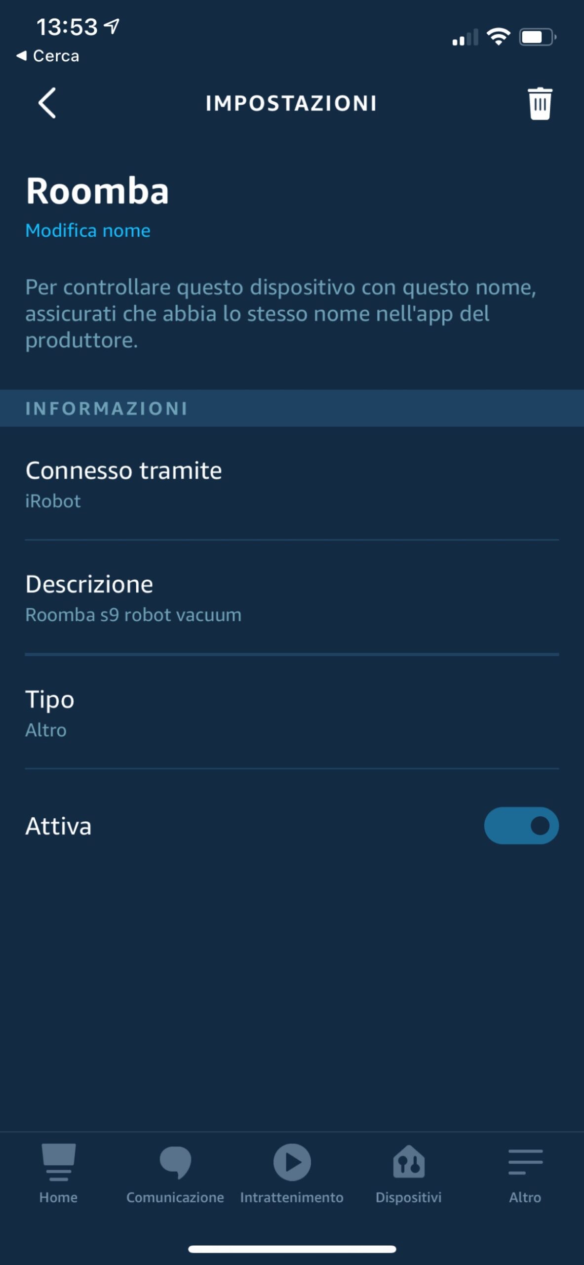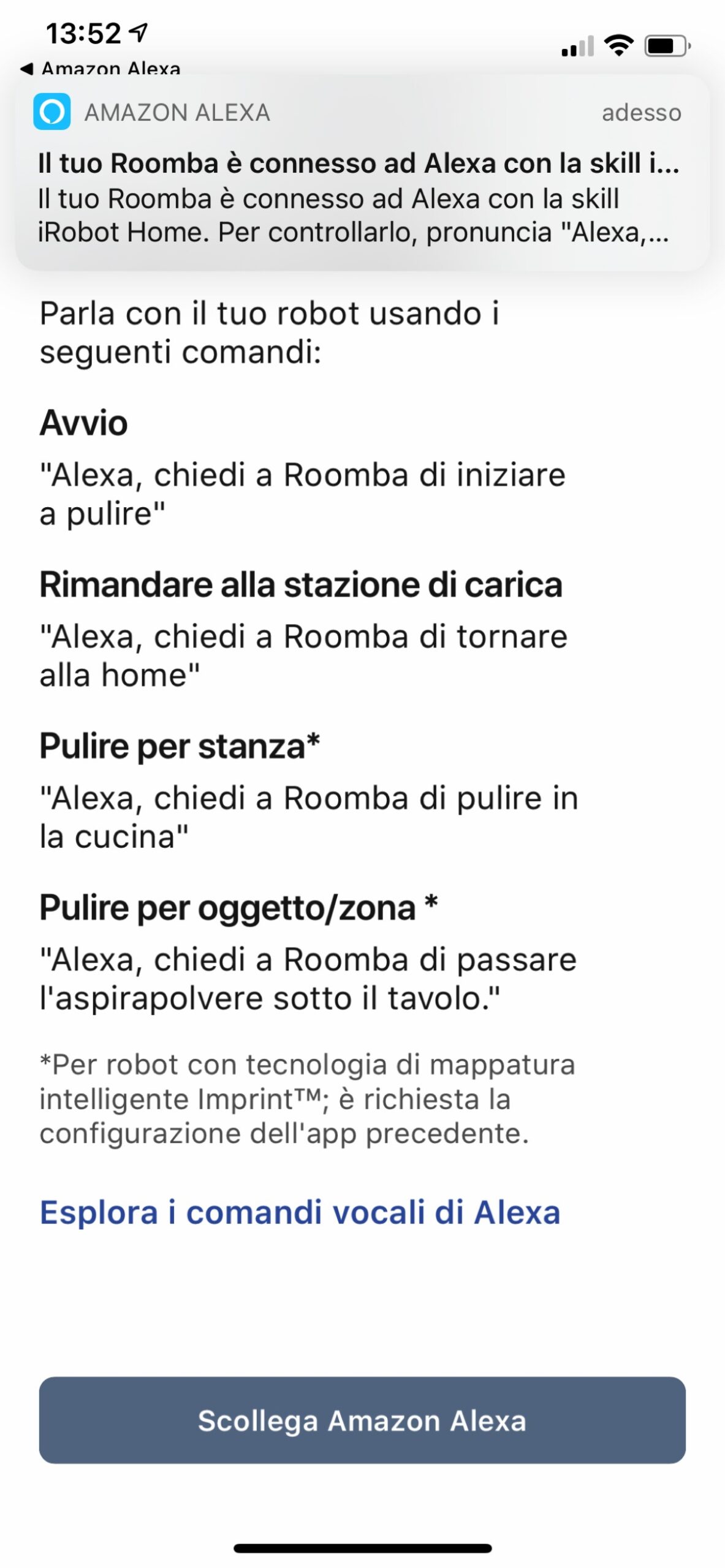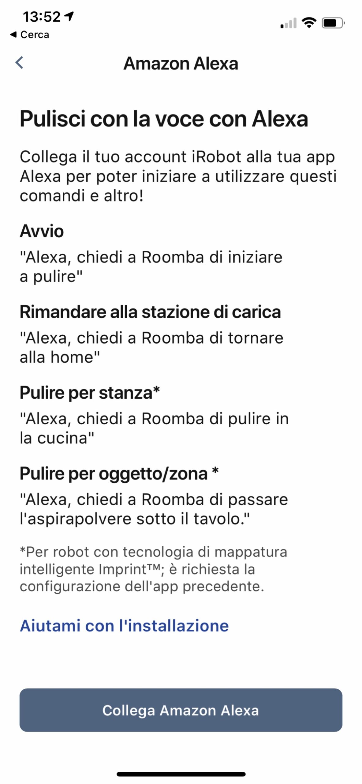 Il poter “battezzare” stanze e pure aree specifiche della casa ci permette anche di migliorare il dialogo con il robot e, grazie ad Alexa e Assistente Google possiamo comunicare all’i7+ le operazioni singole da compiere senza dover accedere allo schermo dello smartphone: questo si rivela assolutamente premiante per chi vuole installare un Roomba nella casa di una persona anziana che ha poca dimestichezza con piccoli schermi ma può utilizzare la voce per impartire comandi rapidi e si dimostra comodo anche per chi, pur non avendo problemi di accessibilità, vuole comunicare più velocemente con l’aspirapolvere. Nella nostra galleria le semplici schermate di configurazione di Alexa. Con la nuova versione del software potremo dire “Alexa pulisci intorno al tavolo della cucina” sicuri che il robot individuerà con precisione l’area da pulire.