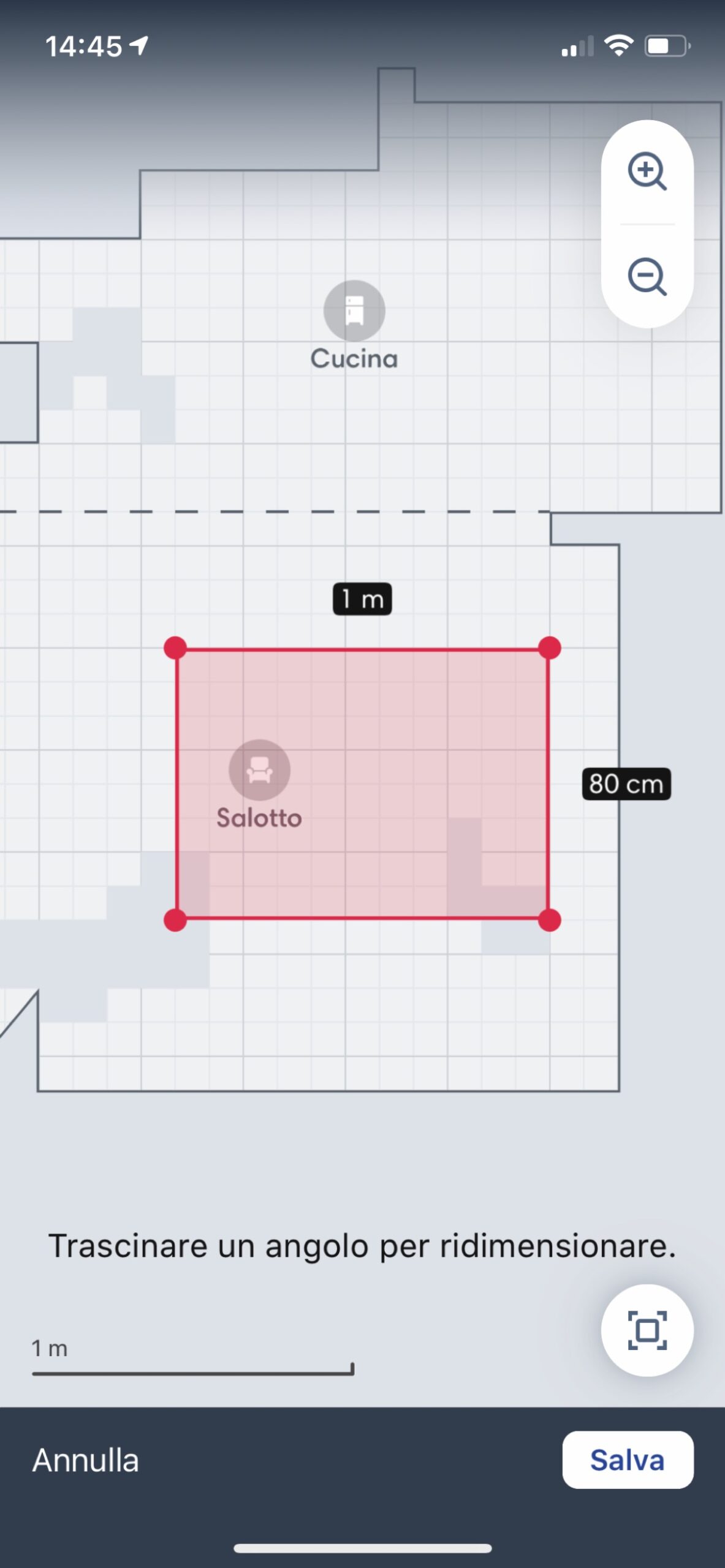 La precisione del rilevamento è ottima sopratutto dopo 2 o 3 perlustrazioni dell’ambiente ma già dalla prima avete un perimetro discretamente definito che vi permette di “battezzare” facilmente le stanze. Con il software più recente potete definire anche specifiche aree: un tappeto, il tavolo di cucina, l’ingresso con cui richiamare una pulizia instantanea alla bisogna o programmare pulizie ripetute per avere una maggiore efficacia; questo vi farà risparmiare tempo, denaro portando ad una maggiore efficienza.