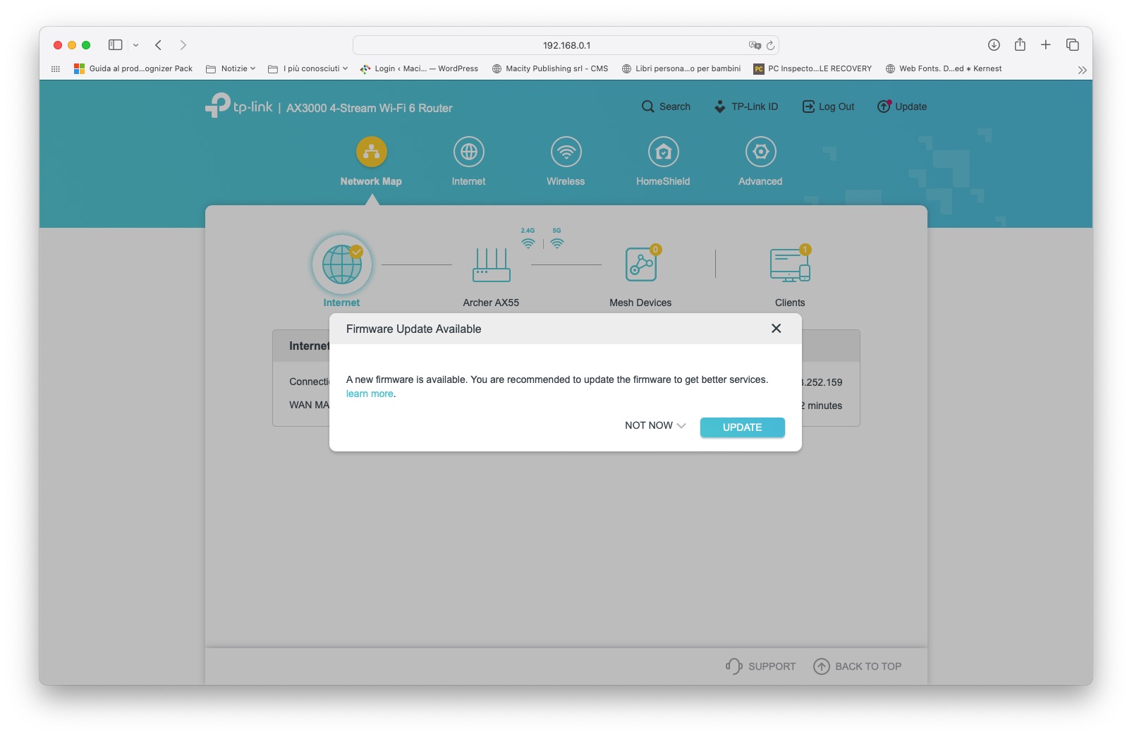 Le varie impostazioni possono essere modificate/verificate dall’app Tether oppure da un qualunque browser connesso alla rete digitando 192.168.0.1 come URL e la password scelta in fase di impostazione. Se è disponibile un firmware aggiornato, al primo collegamento viene segnalato offrendo la possibilità di scaricare e installare subito l’update.