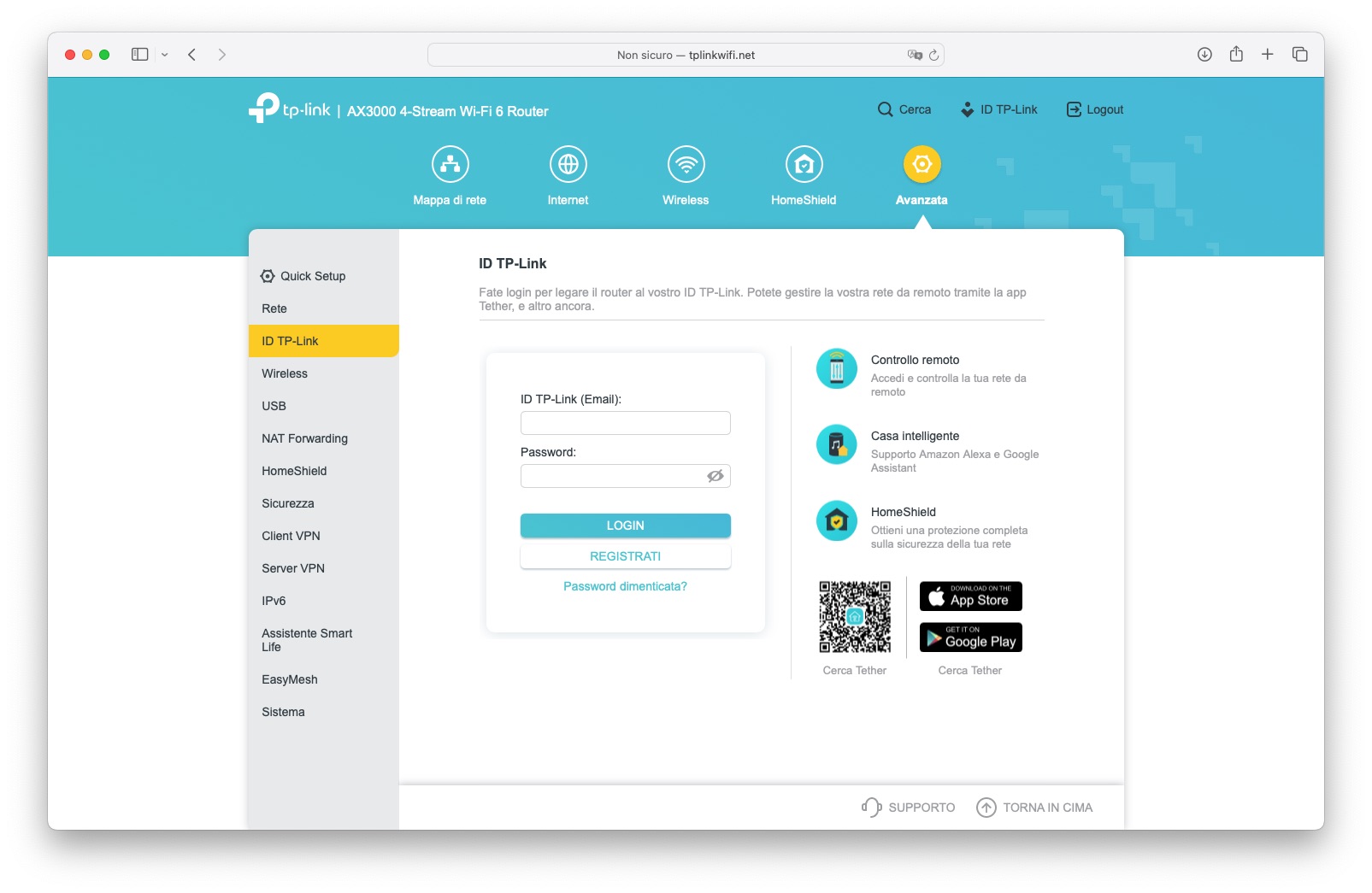 Se la connessione avviene mediante un cavo Ethernet invece che tramite modem DSL, Fibra o satellitare, basta collegare il cavo Ethernet direttamente alla porta internet del router ed effettuare la configurazione tramite browser; è anche possibile effettuarla senza cavi, sfruttando l’app Tether di Tp-link e seguendo i semplici passaggi indicati sullo schermo dello smartphone.