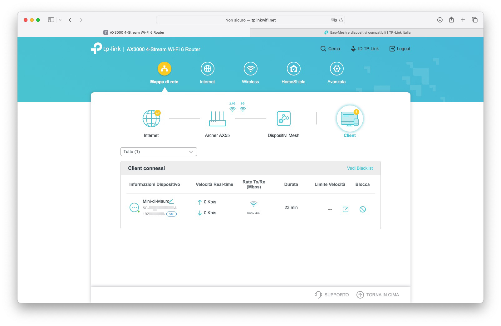 La configurazione è alla portata di chiunque. La traduzione dell’interfaccia in italiano è perfetta e le funzioni importanti ci sono tutte e anche di più permettendo di interagire con un numero davvero elevato di parametri, elemento che sarà certamente gradito dai più esperti, al pari di funzionalità quali la possibilità di impostare regole per il firewalling, il supporto alla DMZ, all’inoltro delle porte e protezione da attacchi di tipo flood. La misurazione delle prestazioni, come sempre lascia il tempo che trova perché dipende da molti fattori (dimensioni dell’edificio in cui si fa la prova, provider usato, congestione di rete, ecc.). Nelle nostre prove abbiamo misurato valori di 600 Mbps a 4 metri dal router e 400 a distanze ancora più elevate con due robuste pareti nel mezzo, dopodiché la velocità tende a calare (problema risolvibile con altri dispositivi OneMesh). Il router si è dimostrato stabile e non ha battuto ciglio con una ventina di dispositivi tra PC, Mac, iPad, iPhone, smart TV, smart speaker collegati. È un prodotto che fa decisamente il suo dovere, con prestazioni interessanti e prezzo competitivo: su Amazon ne momento in cui scriviamo Archer TP-Link AX55 è venduto 79,99 €, in sconto rispetto ai 149,99 € di listino.