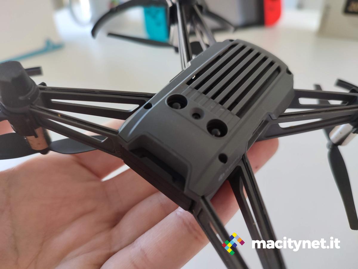 Ryze Tello, comunque, non disdegna qualche sensore inaspettatamente presente su questa fascia. Un paio di sensori rivolti verso il basso permettono al drone di mantenersi stabile in volo, anche al chiuso. Togliendo le mani dai controlli, infatti, si noterà una grande stabilità, un hover che non ci si aspetterebbe da questa periferica. Ovviamente, anche in questo caso il sistema è basato sulla luce, quindi funziona solo in condizioni di luci ottimali.