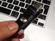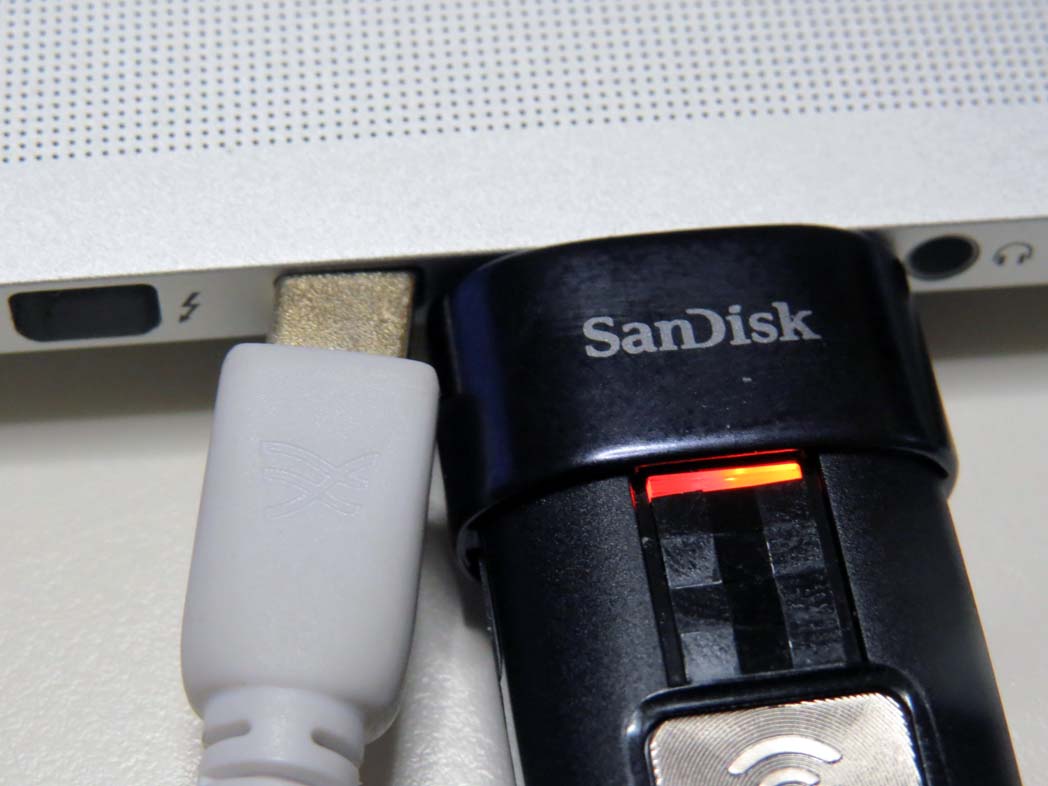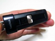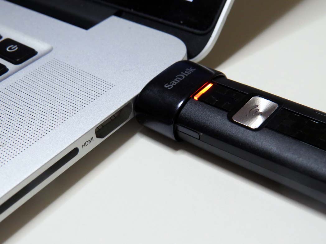 Il SanDisk Connect Wireless Flash Drive arriva da una società che ha una grande esperienza nel mondo delle penne Flash e lo si vede anche dando semplicemente ad esso uno sguardo superficiale. A prima vista l’accessorio assomiglia, infatti, in tutto e per tutto, dimensioni incluse, proprio ad un pen drive, anche se forse non uno di ultima generazione visto la miniaturizzazione che questi prodotti hanno raggiunto ultimamente. Questo lo distingue immediatamente da tutti i concorrenti che sono più pesanti, grandi e goffi. SanDisk è riuscita a creare un prodotto che è un grado di scivolare un taschino, proprio come un pen drive. Gli sforzi compiuti da SanDisk in fase di inegnerizzazione per molti di coloro che ci leggono, specialmente chi utilizza primariamente un desktop, saranno sufficienti a permettere di collegare la chiavetta ad una porta USB senza troppi problemi con porte circostanti, cosa quasi mai vera per altri prodotti simili che essendo molto voluminosi, e specialmente più larghi, finiscono per essere scomodi. Va detto però che su un portatile, soprattutto per la presenza di un cappuccio scorrevole che ne aumenta l’ingombro, la probabilità che la chiavetta Wi-Fi di SanDisk finisca per impedire di collegare un cavo nella porta accanto, sono concrete; nel nostro caso ad esempio, la chiavetta collegata ad un MacBook Pro Retina e ad un MacBook Air, non permette di usare nè i cavi Thunderbolt nè il cavo HDMI nelle porte adiacenti alle porte USB.