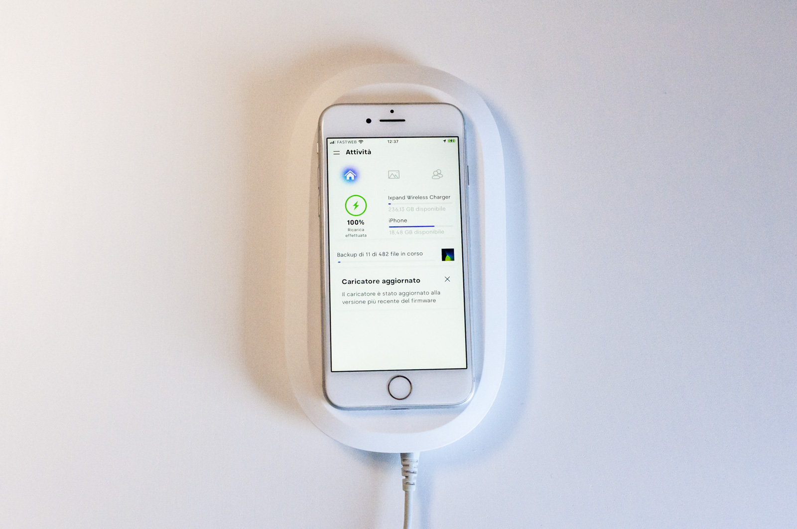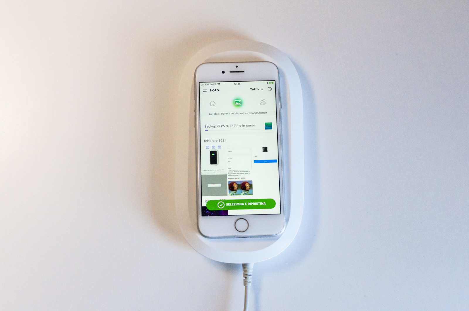 Una volta eseguite le operazioni di ruotine, la base è pronta per operare: per attivarla basta posizionarci il telefono sopra e il backup parte subito, la prima volta mettendoci un po’ di più mentre dalla seconda è molto più veloce.