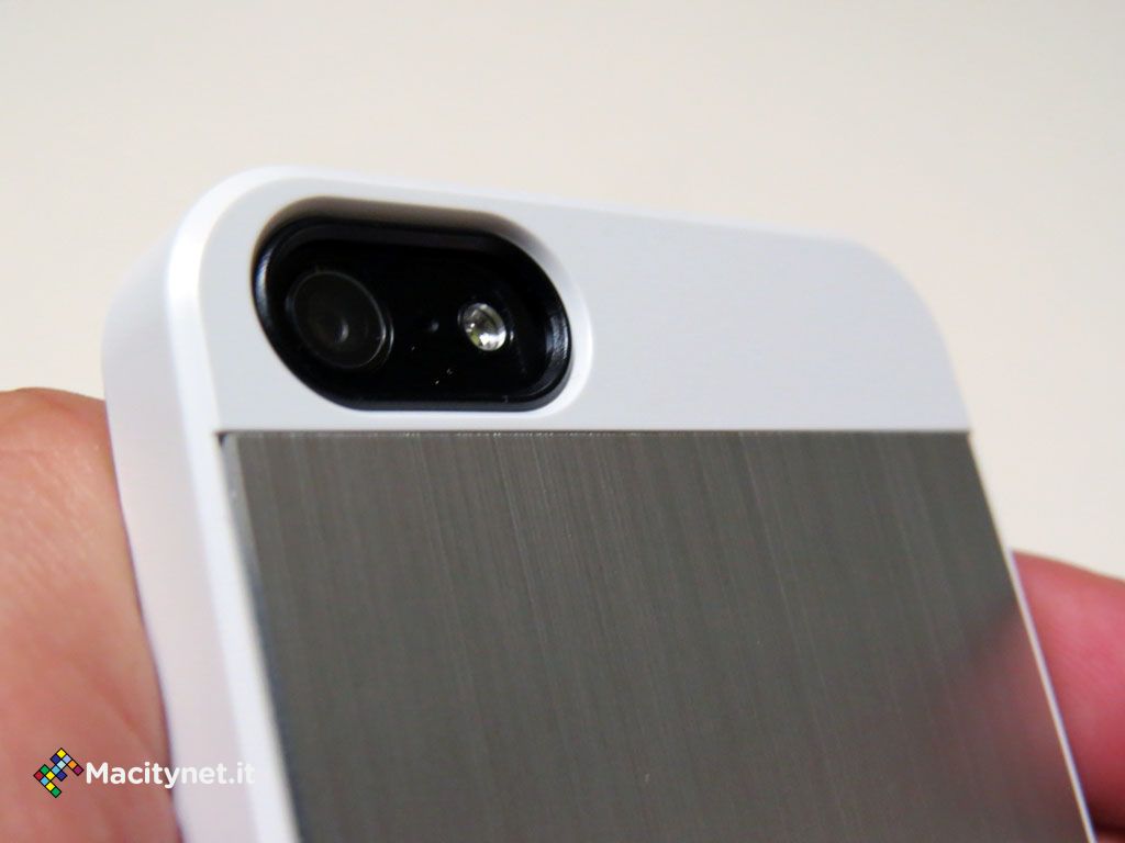 La Saturn è studiata per essere poco intrusiva e ci riesce perfettamente. È lineare, molto sottile e il mix di plastiche di qualità e di alluminio contribuiscono a dare l’impressione di qualche cosa di ben costruito e di stilisticamente molto coerente con l’iPhone. Una volta calzata (operazione che riesce facilmente; toglierla è un discorso diverso) si fonde molto bene con l’iPhone al punto da sembrare parte integrante del telefono. Perfetto per misura e finitura il taglio dei fori per il bottoni. Nella parte posteriore, dove si trova l’apertura per la camera di iPhone, si nota la cura del costruttore in un dettaglio minuscolo ma importante. Il bordo è stato rivestito in plastica nera per impedire rifrazioni indesiderate nelle foto.