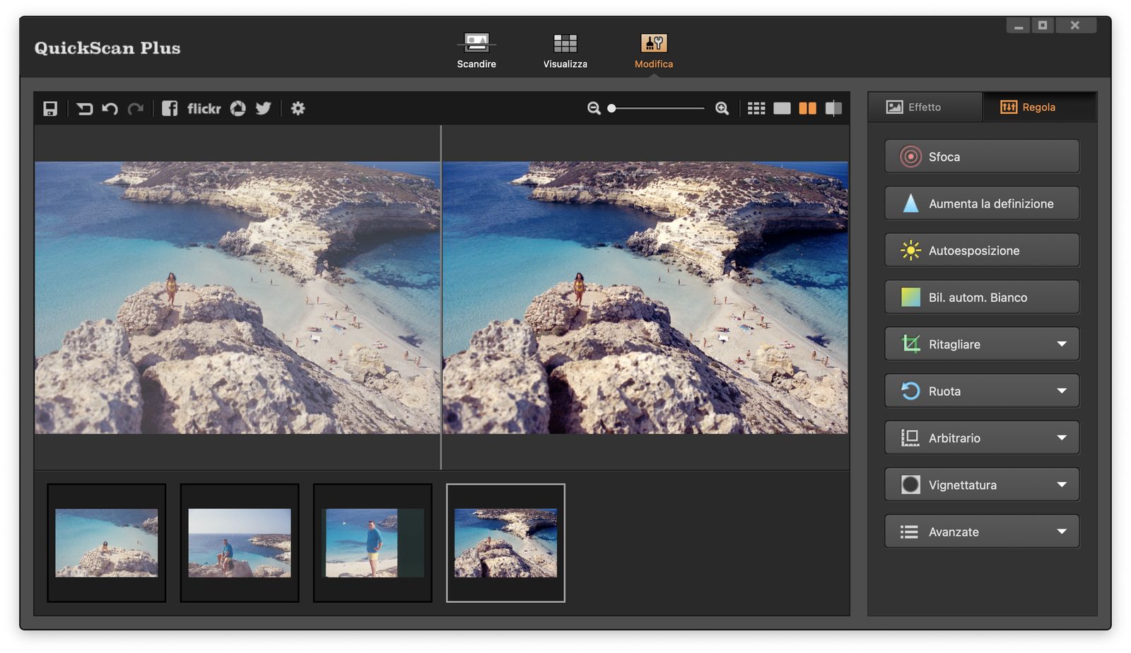 Chi scrive consiglia di creare flussi di lavoro che operano con la scansione prima di tutto, andando a ritoccare con il software integrato solo le immagini più complesse, delegando poi ad un passaggio con Photoshop o più semplicemente a Foto su Mac tutti i ritocchi, il cui numero e tipo possono variare molto da scatto a scatto, in particolare nel mondo amatoriale dove spesso serve intervenire oltre che nel bilanciamento colore e nella correzione dei graffi e della polvere, anche nel taglio e nella dominante di colore (e non ce ne voglia l’amico Giorgio).
