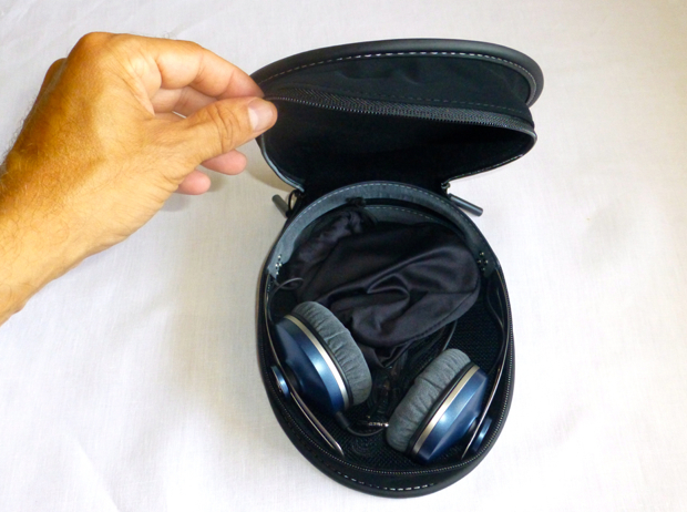 Con le Momentum originali è fornita una massiccia custodia rigida per il trasporto, perfetta per proteggere completamente le cuffie ma decisamente ingombrante. Invece nella dotazione delle Momentum On-Ear troviamo una elegante protezione semi-rigida, che occupa molto meno spazio. Si tratta del migliore compromesso: la struttura semi-rigida assicura una buona protezione, anche se leggermente inferiore a quella offerta dalla custodia delle Momentum, ma offre il vantaggio di ingombrare meno, migliorando notevolmente la portabilità delle cuffie On-Ear.