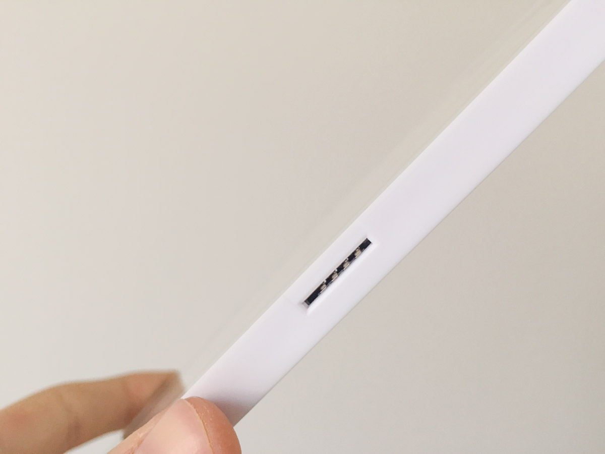 Ciascun lato di ogni singolo pannello presenta un’apertura grande all’incirca quanto quella di uno slot microSD: qui andranno inseriti i piccoli connettori soltanto nei lati che andranno affiancati a quelli di altri triangoli, consentendo il passaggio di corrente tra un pannello e l’altro per la necessaria alimentazione.