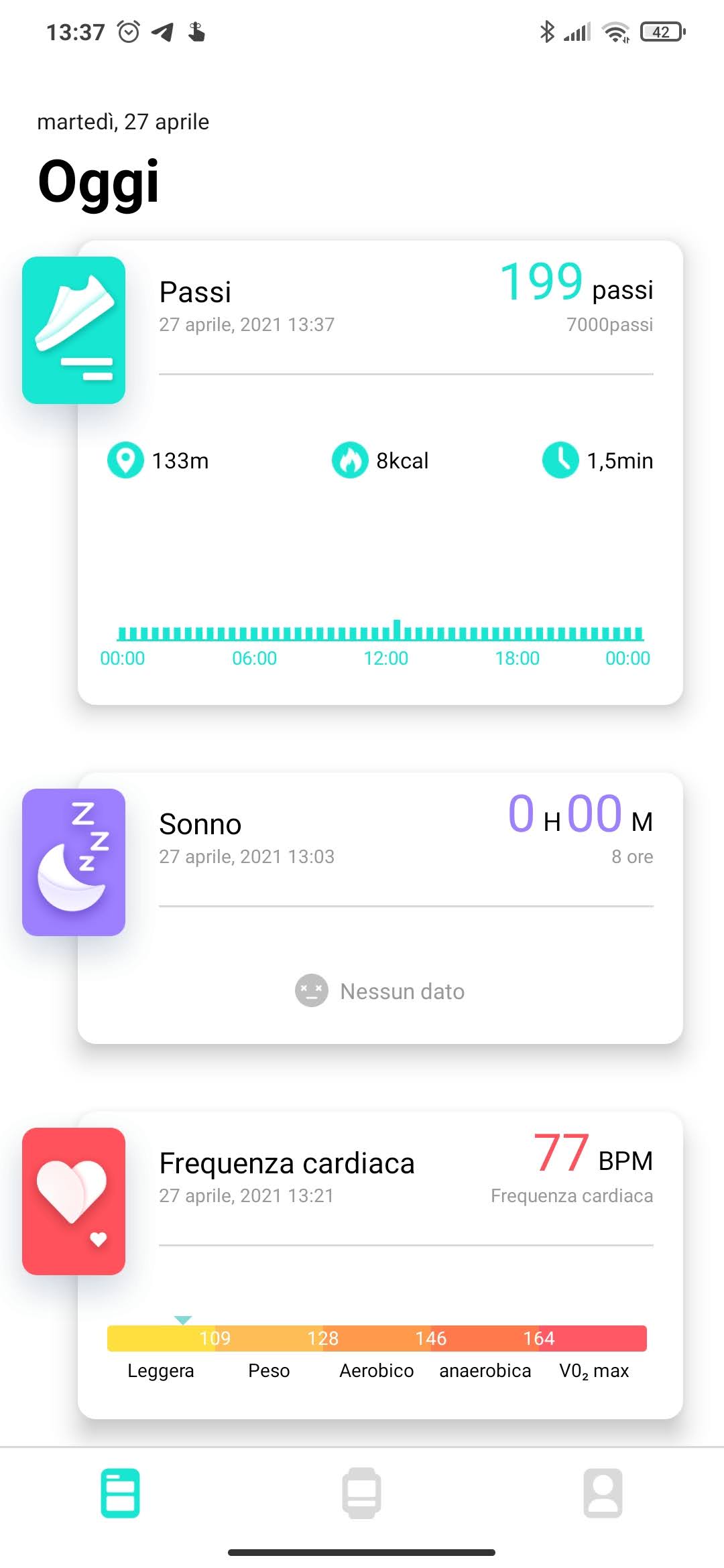 Le misurazioni ci sono sempre parse verosimili. In particolare il conteggio dei passi è buono, almeno se paragonato a quello di smartband più blasonate. I dati sono comparabili, con uno scarto a fine giornata davvero trascurabile.
