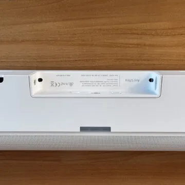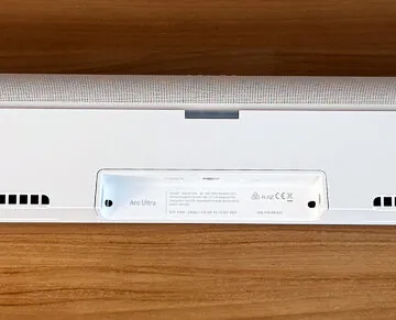 Rispetto ad Arc la nuova ultra cambia anche la presenza degli interruttori sul retro: oltre alla presa di corrente diretta (l’alimentatore incluso) e alla connessione eARC su HDMI che può essere anche ottica attraverso un adattattore (non in dotazione) abbiamo ovviamente la radio Wi-Fi e, novità, la connessione Bluetooth che ci permetterà collegamenti rapidi per installazioni volanti magari con proiettore in esterni.