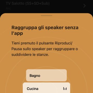 Come abbiamo detto più volte è un peccato che Sonos non gestisca una memoria di più configurazioni ottimali delle stanze e delle posizioni degli speaker per attivarle a seconda degli spostamenti ma l’opzione introdotto con Era è sicuramente comoda e immediata per le situazioni più comuni.