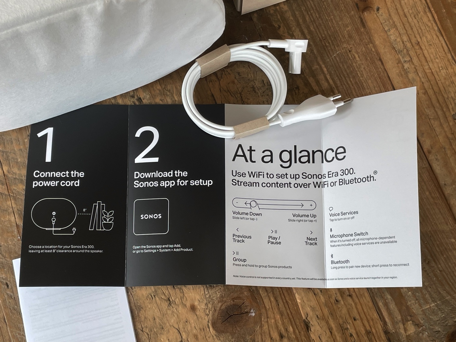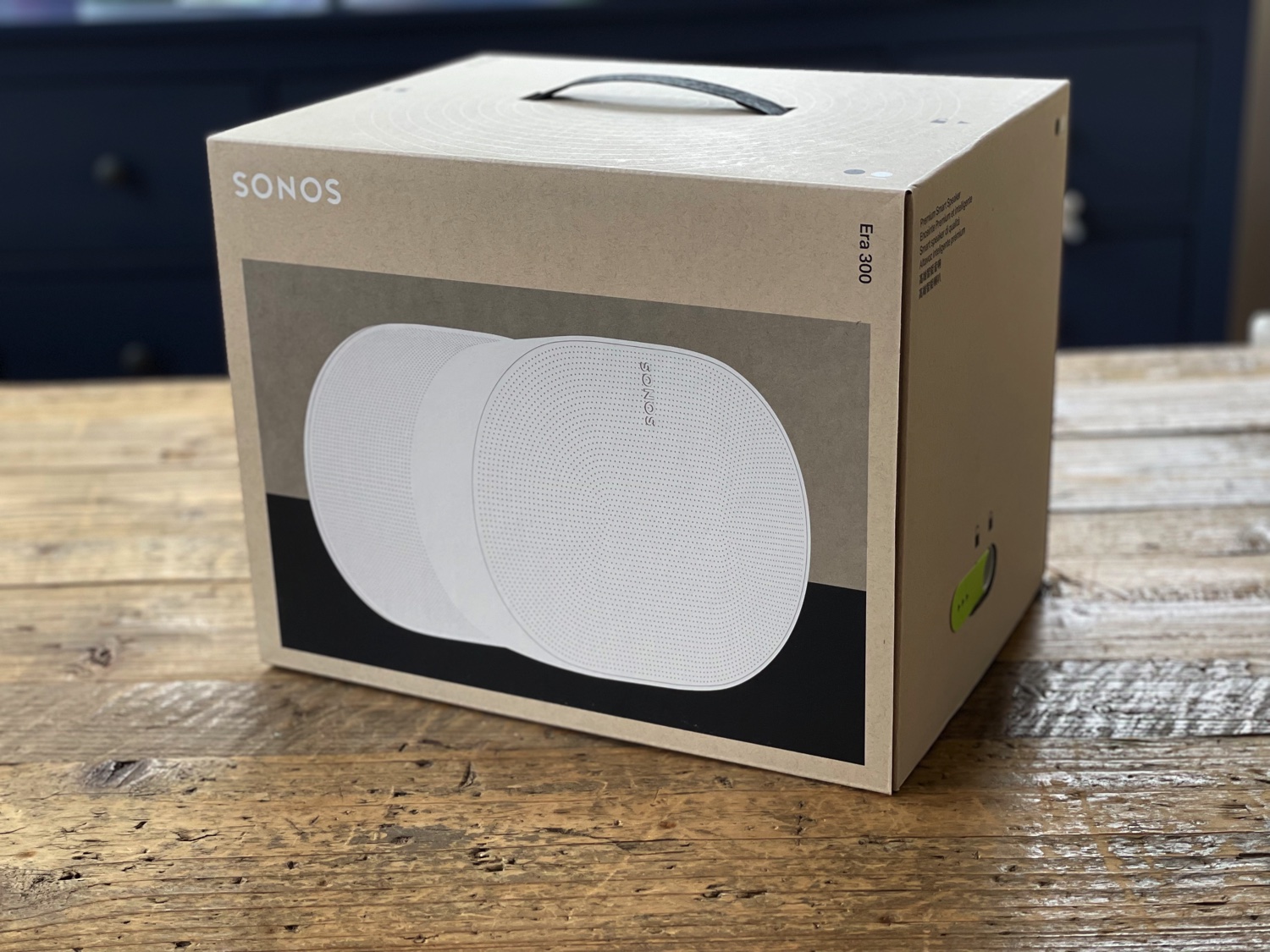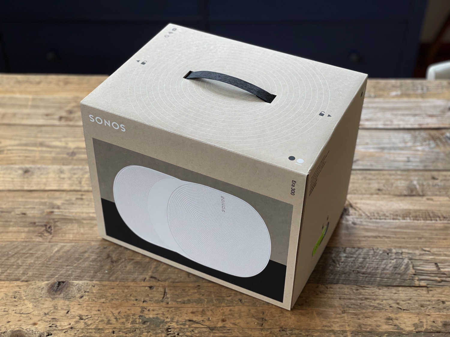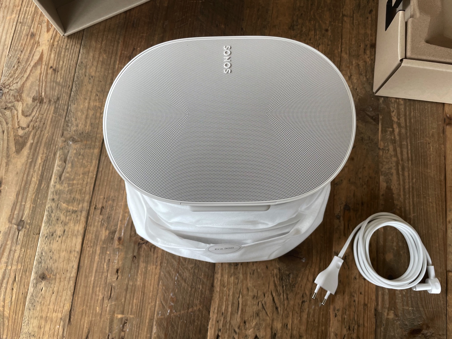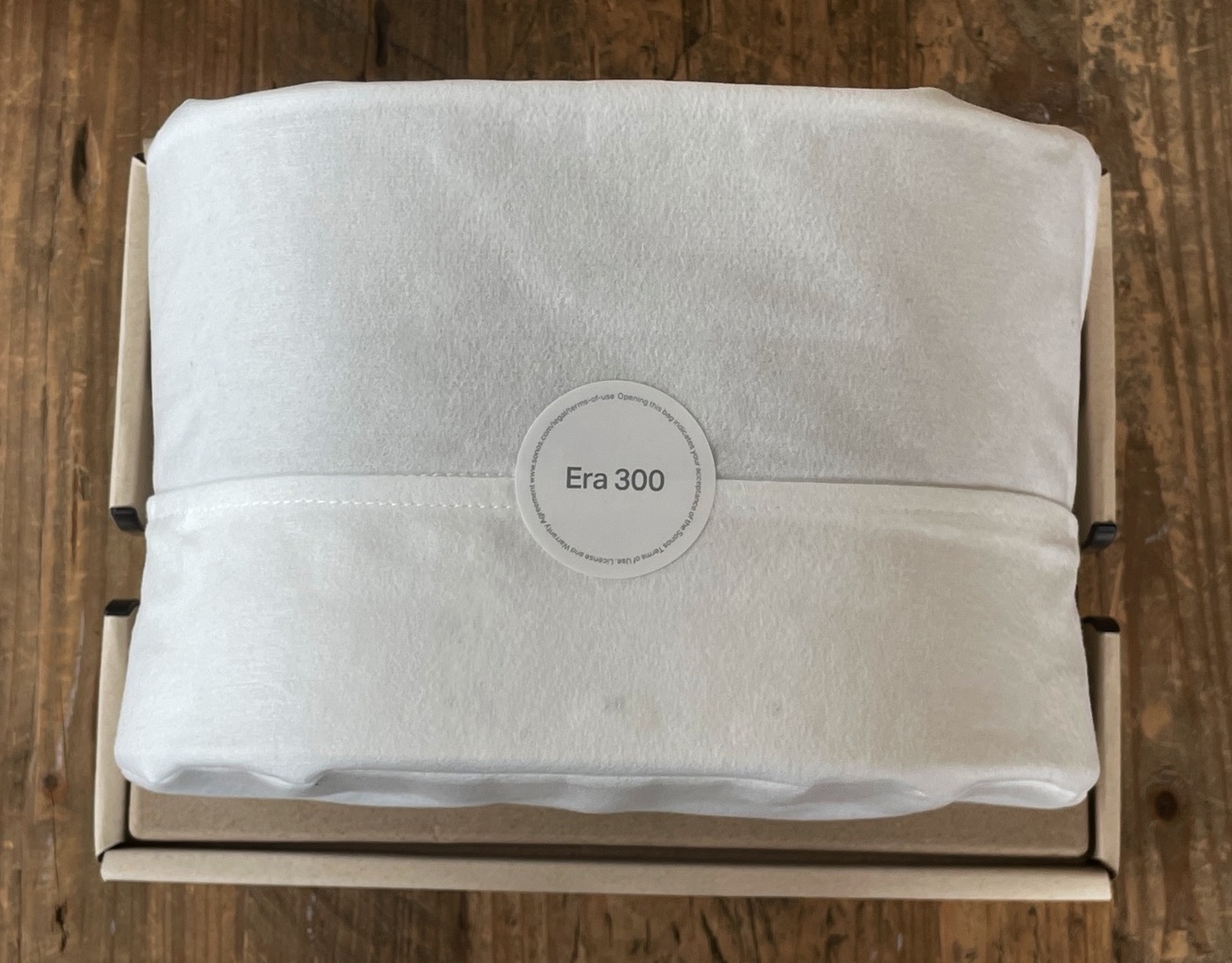 Se c’è una azienda che si è data da fare tra le primissime per eliminare la plastica e il materiale non riciclabile dalle confezioni dei propri prodotti questa è Sonos: da anni ormai nei nostri unboxing dobbiamo cercare con il lanternino un elemento che non sia in carta o cartone o plastica riciclata e qui nella confenzione di Era 300 troviamo solo la maniglia, l’ingegnoso sistema di sblocco della scatola che permette anche il riuso come sistemaa di trasporto e la cover di tessuto/non tessuto che preserva lo speaker durante il trasporto.