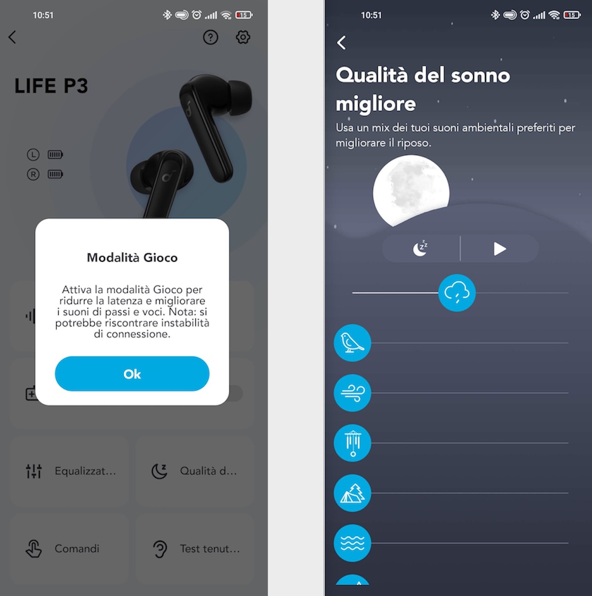 Si abbinano allo smartphone anche tramite l’app Soundcore, in grado di regolare praticamente tutto l’immaginabile. E’ possibile “giocare” con l’equalizzatore, impostare le tre diverse modalità di riproduzione, tra ANC, normale e Trasparenza, così come è possibile personalizzare le funzioni al tocco, che permettono di cambiare traccia, aumentare o diminuire il volume, scegliere tra le tre funzioni di riproduzione, e altro ancora.