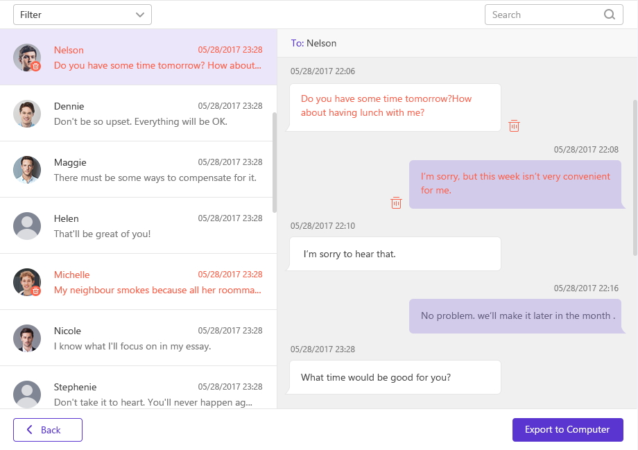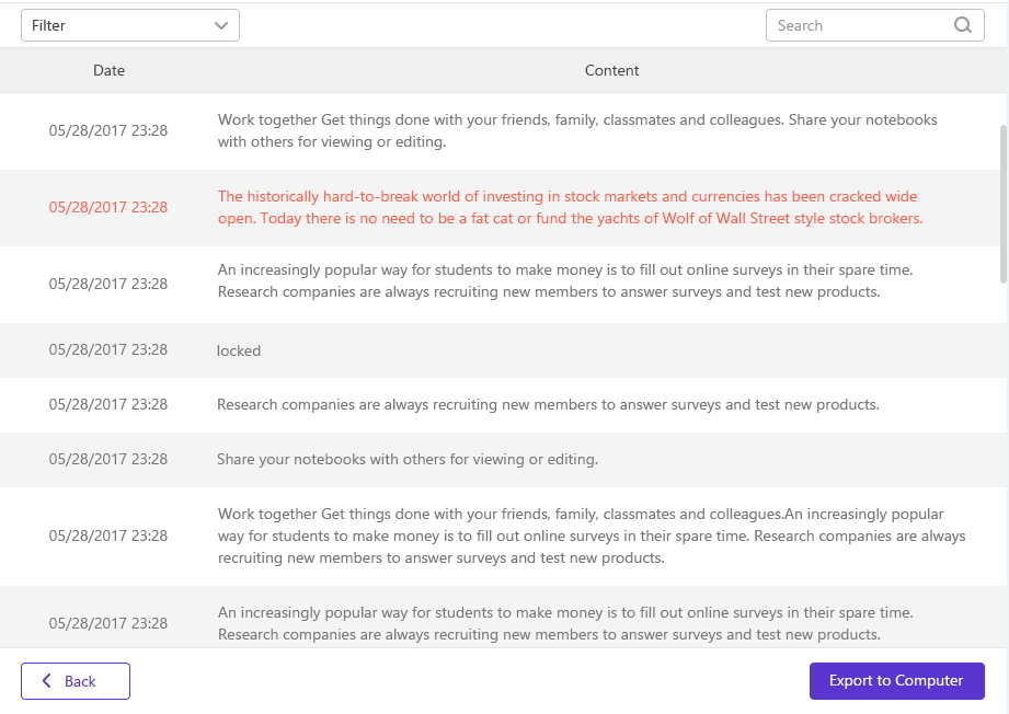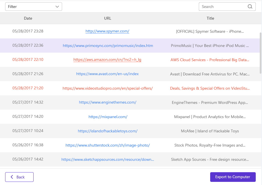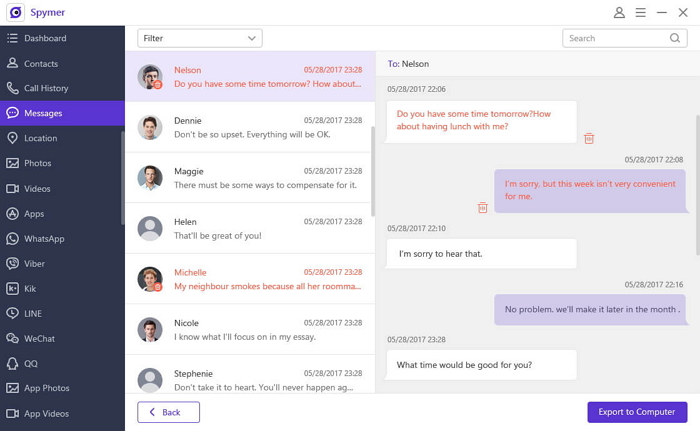 Naturalmente, dalla stessa interfaccia grafica sarà possibile esportare le informazioni desiderate, così da poterne avere una copia in locale su PC o Mac. La galleria in basso include tutte le schermate Spymer con tutti i dati che è possibile leggere in chiaro.