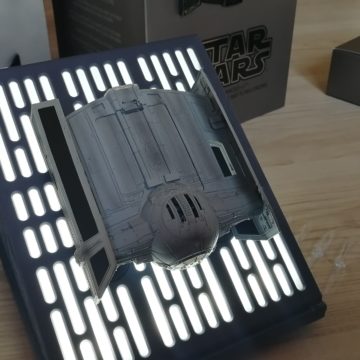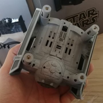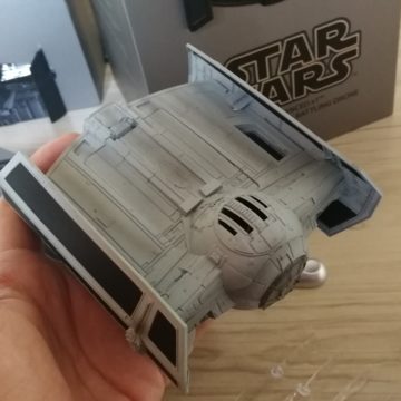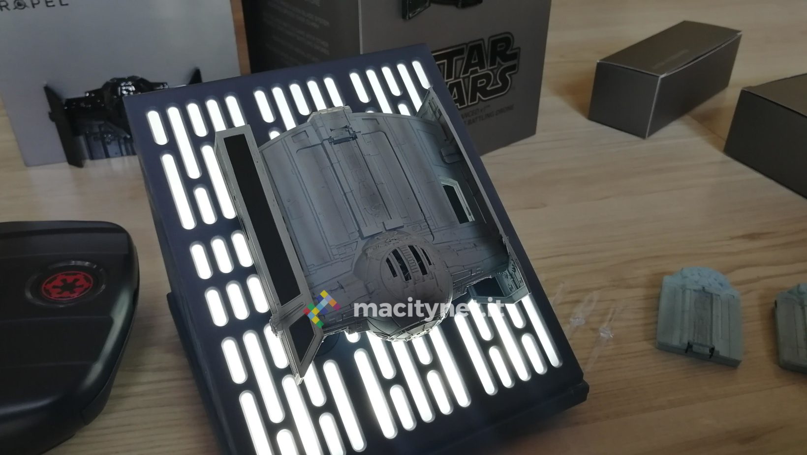 Mai come questa volta il pack di vendita ha la sua importanza. Propel ha pensato davvero a tutto pur di dare ai collezionisti un pezzo davvero unico nel suo genere, che possa attirare l’attenzione sin dall’apertura della confezione. Al di là del cartonato, “sigillato” con il logo del Tie Advanced, che già permette di abbellire una qualsiasi scrivania o vetrina da collezione, l’unboxing è tutto da ascoltare e guardare. All’apertura del coperchio superiore, infatti, la piattaforma di lancio del drone prenderà vita, accendendosi letteralmente, grazie ad un fascio luminoso di LED a luce bianca, intonando anche i diversi background sonori della nota serie.