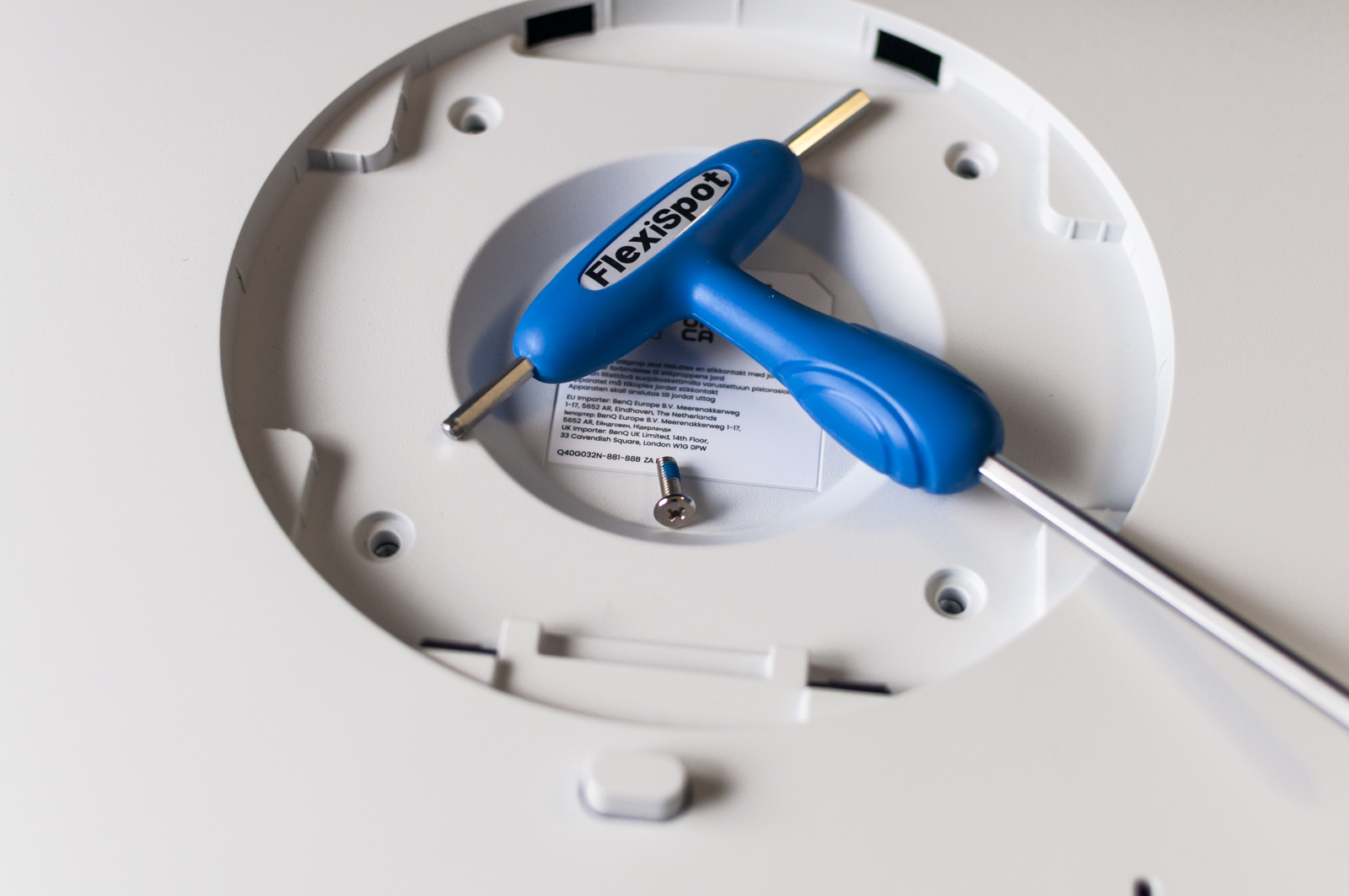 La base del BenQ BSH01 Ergo Arm è costruita con agganciarsi al tavolo con un gancio a perno classico, ma è lodevole l’attenzione di BenQ nei dettagli, con l’inserimento di una superficie rigida orizzontale che, allargandosi, evita che la troppa pressione sul gancio provochi il danneggiamento o la rottura per quanto riguarda le scrivanie in vetro oppure quelle in compensato.