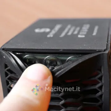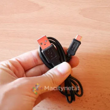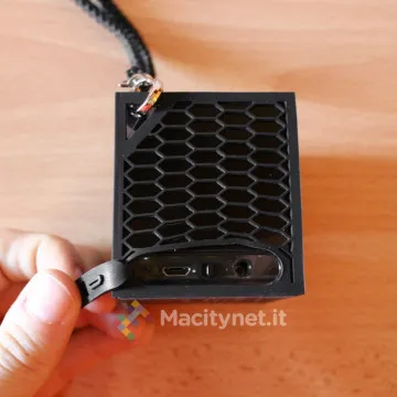La rete in gomma non aiuta invece quando si parla di sporco e polvere. Ne attira parecchio che finisce irrimediabilmente anche nell’apertura, anche se in più di un mese di incessante utilizzo, non ci ha causato troppi problemi: basta una soffiata decisa ed un panno leggermente umido per liberarsene in pochi secondi. In un angolo della cassa troviamo infine un piccolo foro che ne garantisce l’aggancio del moschettone per il laccio dal polso incluso nella confezione.