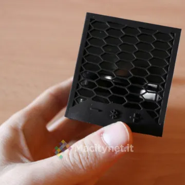 Il problema è infatti proprio qui: la protezione in rete di gomma è incastrata in una stretta scanalatura dalla quale, per curiosità, abbiamo provato a rimuovere. Staccandola da un lato (quello dove si trovano i pulsanti “+”, “-“ e Bluetooth) abbiamo potuto sbirciare la struttura dei tasti, ma nel momento in cui ci siamo decisi a re-inserirla, ci è sembrato quasi impossibile. Soltanto con l’aiuto di un coltello con una punta molto sottile e tanta pazienza siamo riusciti ad incastrarla di nuovo, maledicendo il momento in cui ci era sembrato interessante provare a sganciarla.