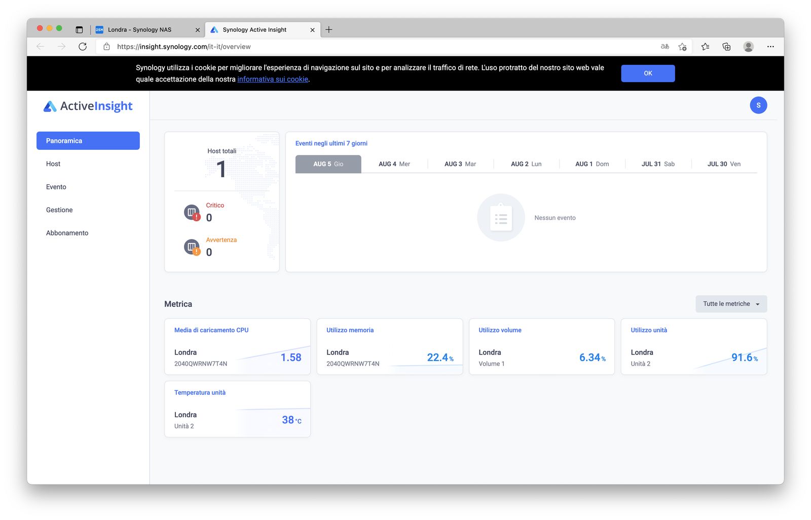 A controllo di questo la funzione Active Insight, che controlla con una consolle nel cloud, lo stato dei vari NAS dislocati, in modo che il responsabile IT di una azienda possa monitorare lo stato dei NAS dei dipendenti a casa.