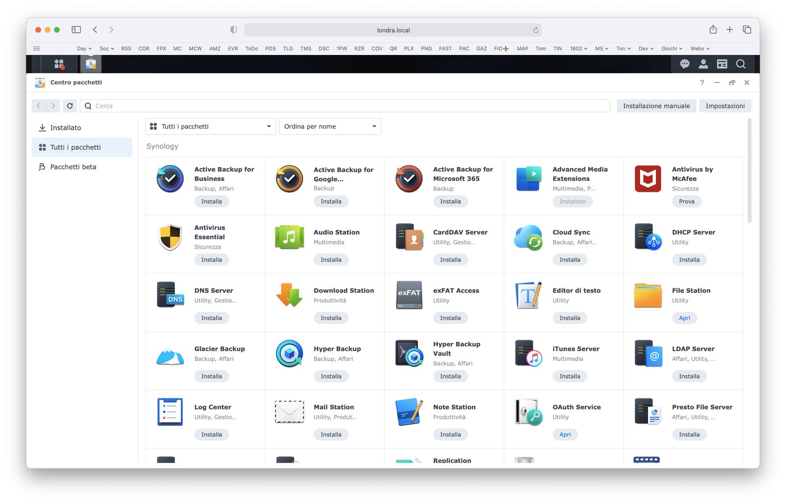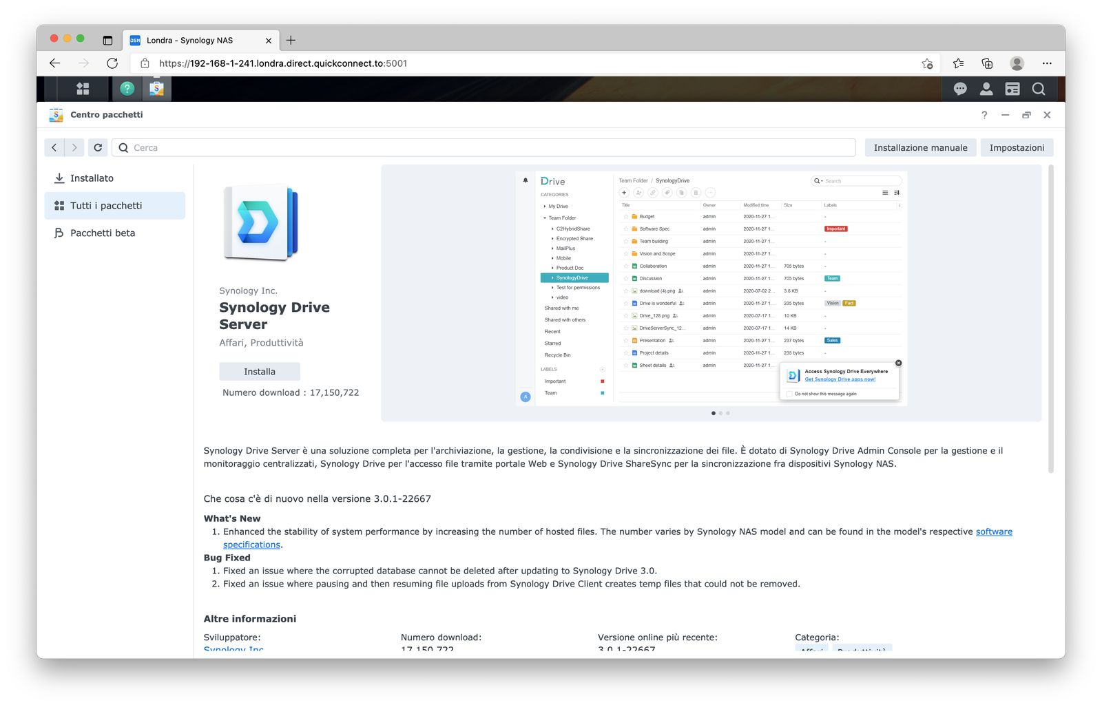La dinamica dell’utilizzo è sempre la stessa, con un eccellente Centro pacchetti (uno store per App e servizi), anche se continua a mancare una app per il download dei file .torrent: in genere, l’attenzione di Synology è più per i prodotti interni che per quelli di terze parti.