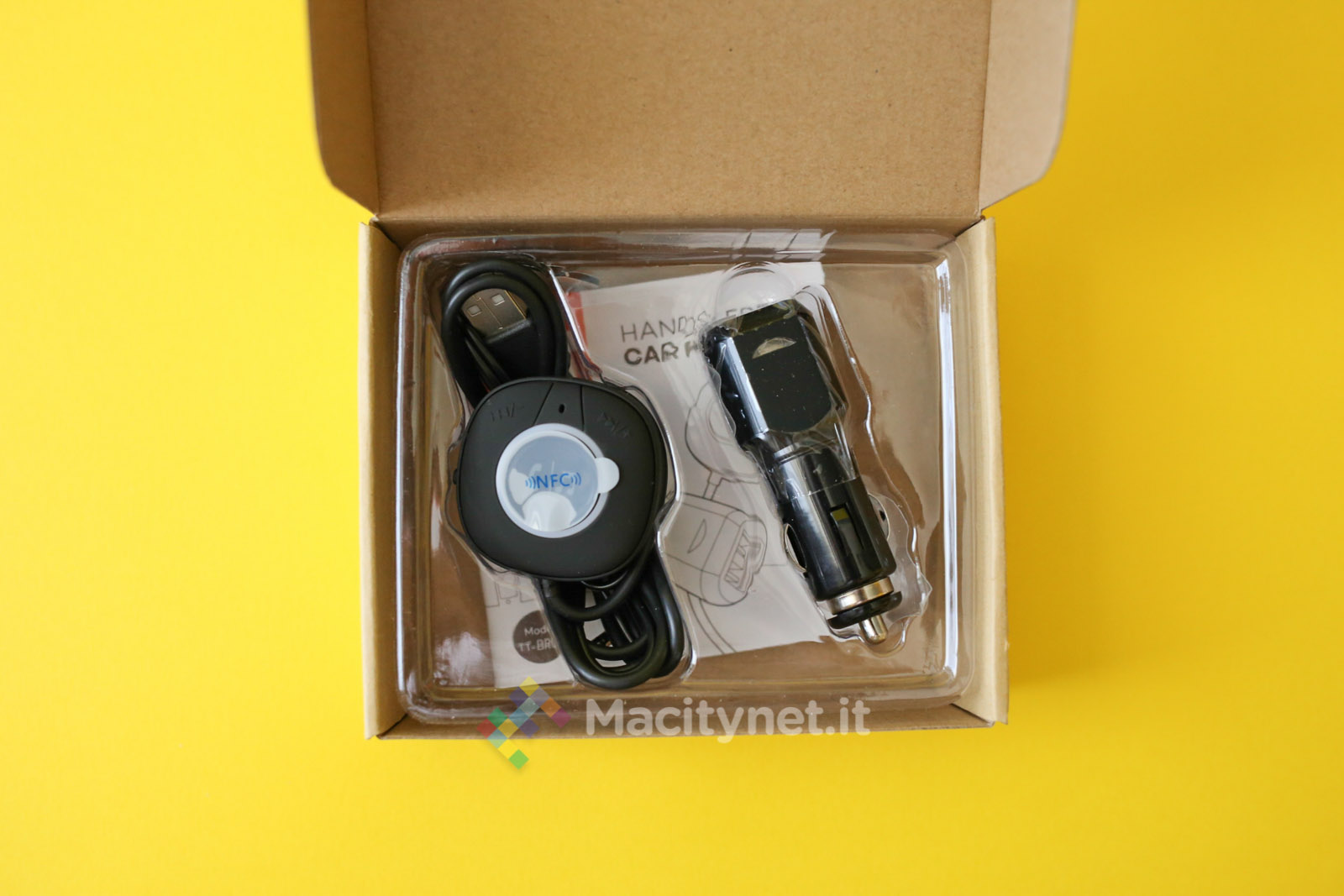 Nella confezione con cui viene venduto troviamo un caricatore con presa accendisigari e due uscite USB, una per alimentare il ricevitore Bluetooth ed una da 2,1 A per ricaricare a piena potenza smartphone e tablet. Nella scatola trovano posto anche un manuale d’istruzioni in più lingue, italiano compreso, ed un adesivo 3M aggiuntivo.