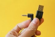 Il ricevitore Bluetooth è composto principalmente da plastica di buona qualità con finitura gommata bella da vedere e piacevole da toccare. Un grosso pulsante centrale, in plastica lucida, è utile per avviare/fermare la riproduzione musicale o accettare/rifiutare una chiamata in entrata, nonché richiamare l’ultimo numero. Due pulsanti ai lati permettono di passare al brano precedente e successivo alla singola pressione e regolare il volume con un click prolungato.