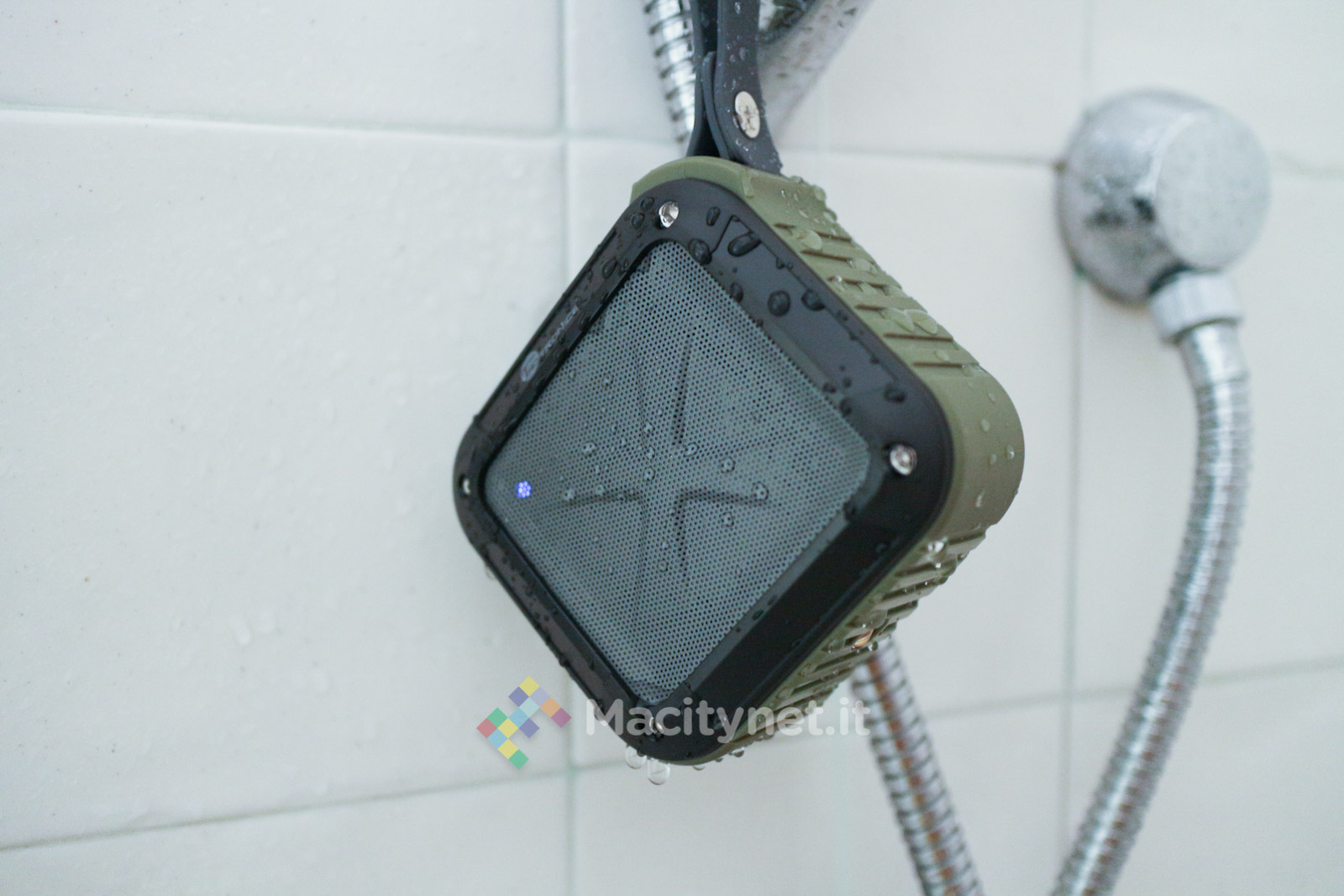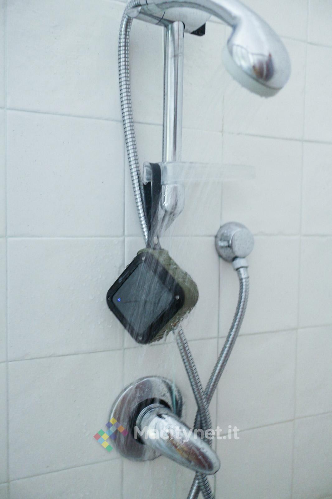 Tuttavia è giusto segnalare che, dopo essere stato esposto per oltre un minuto al getto diretto dell’acqua, l’altoparlante non ha comunque smesso di suonare e, a distanza di settimane, ci accompagna ancora sotto la doccia dove si trova costantemente a contatto con notevoli schizzi di acqua.
