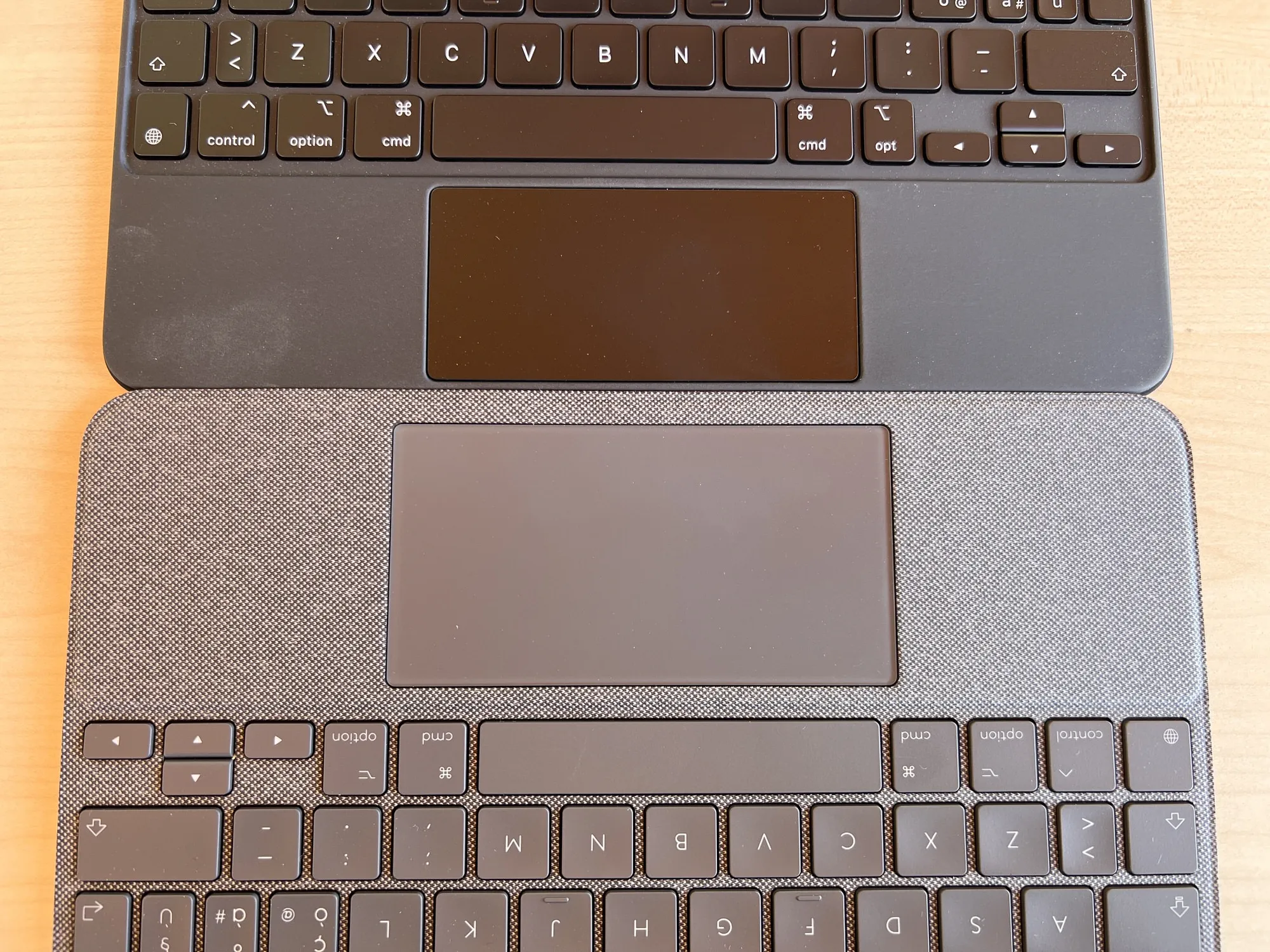 La trackpad della tastiera Logitech ha misure generose per un accessorio di questo tipo: 11X5,5 centimetri. Quella della Magic Keyboard è più piccola: 10X4,5 cm. In termini di centimetri quadrati è di ben il 33% più ampia: non poco.
