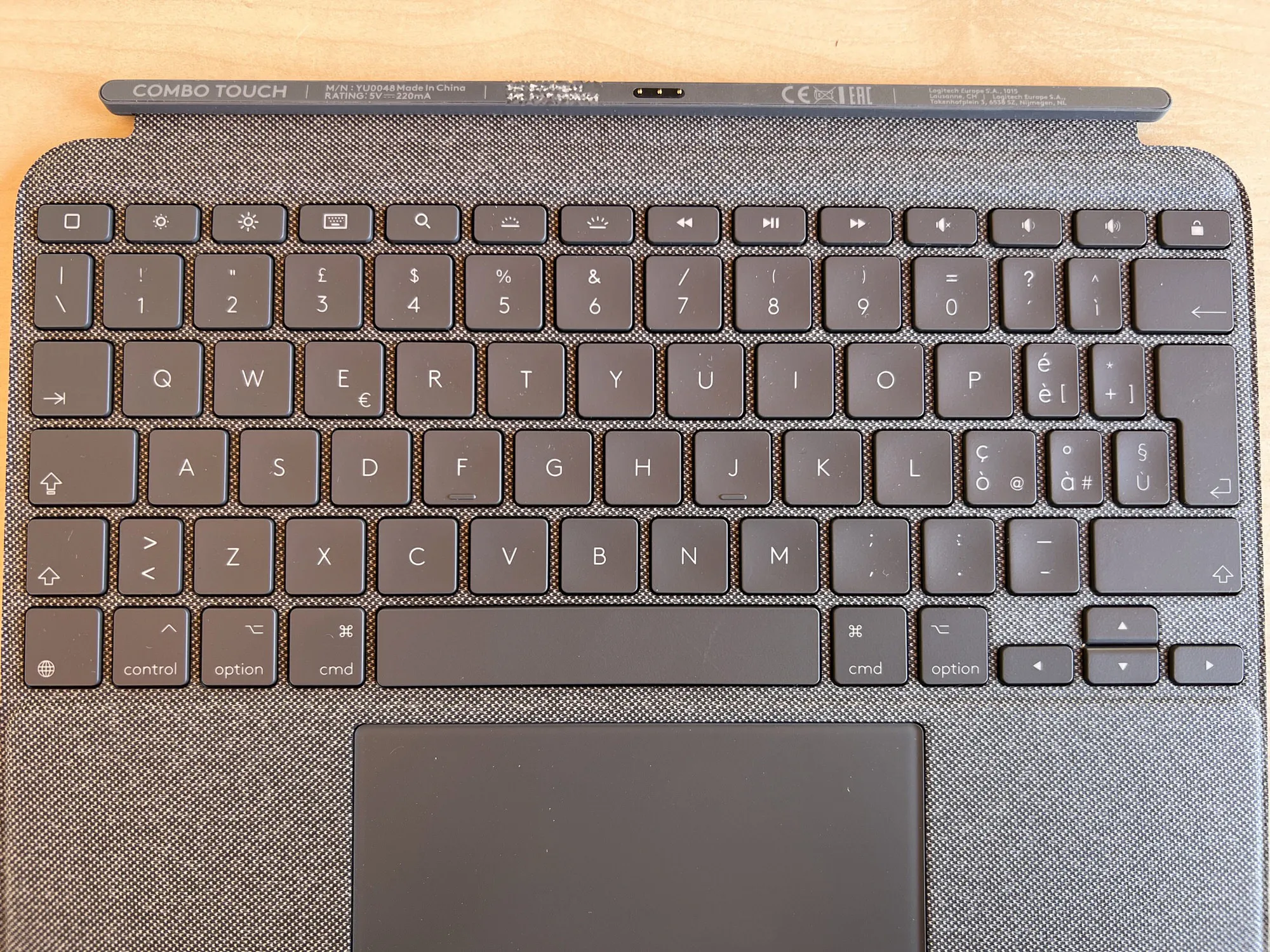 Dopo le specifiche veniamo al dunque. Come si scrive sulla Logitech Combo Touch? La risposta è: bene. Dopo un breve periodo, una decina di minuti, di presa di confidenza non c’è molta differenza nella velocità e precisione di scrittura rispetto ad una tastiera di un computer portatile. Nonostante la vasta trackpad, c’è un buon spazio per appoggiare il palmo e la sensazione al contatto è piacevole grazie al materiale usato per il rivestimento.
