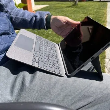 Potremo staccare la tastiera e usare iPad con lo schermo touch, regalando l’inclinazione sul piano, magari per una videoconferenza, per navigare o disegnare senza gestire un pezzo che in quel momento non serve (foto sotto).