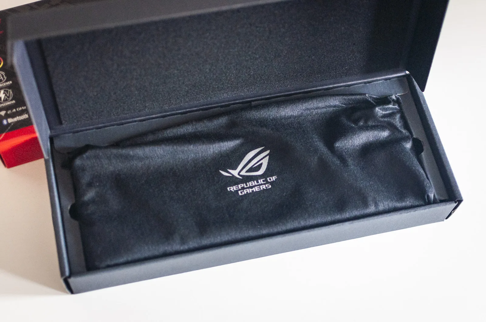 Nella confezione, ad accompagnare la ROG Falchion RX Low Profile nella confezione (oltre ad una busta vellutata e un adesivo) ci sono un cavo USB-C/USB-A (che con un semplice adattatore diventa USB-C/USB-C) di colore grigio intrecciato molto lungo e un coperchio di protezione della tastiera, utile quando la si deve trasportare o magari lasciare sulla scrivania e si vuole evitare che possa essere impolverata.